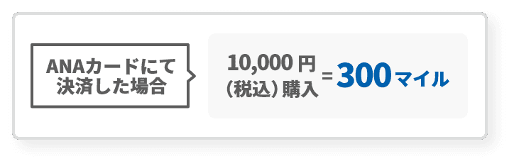 さらに、ANAカードでクレジット決済された方には、上記マイルに加え、ANAカードマイルプラス分としてご利用金額100円(税込)につき1マイルを積算いたします。