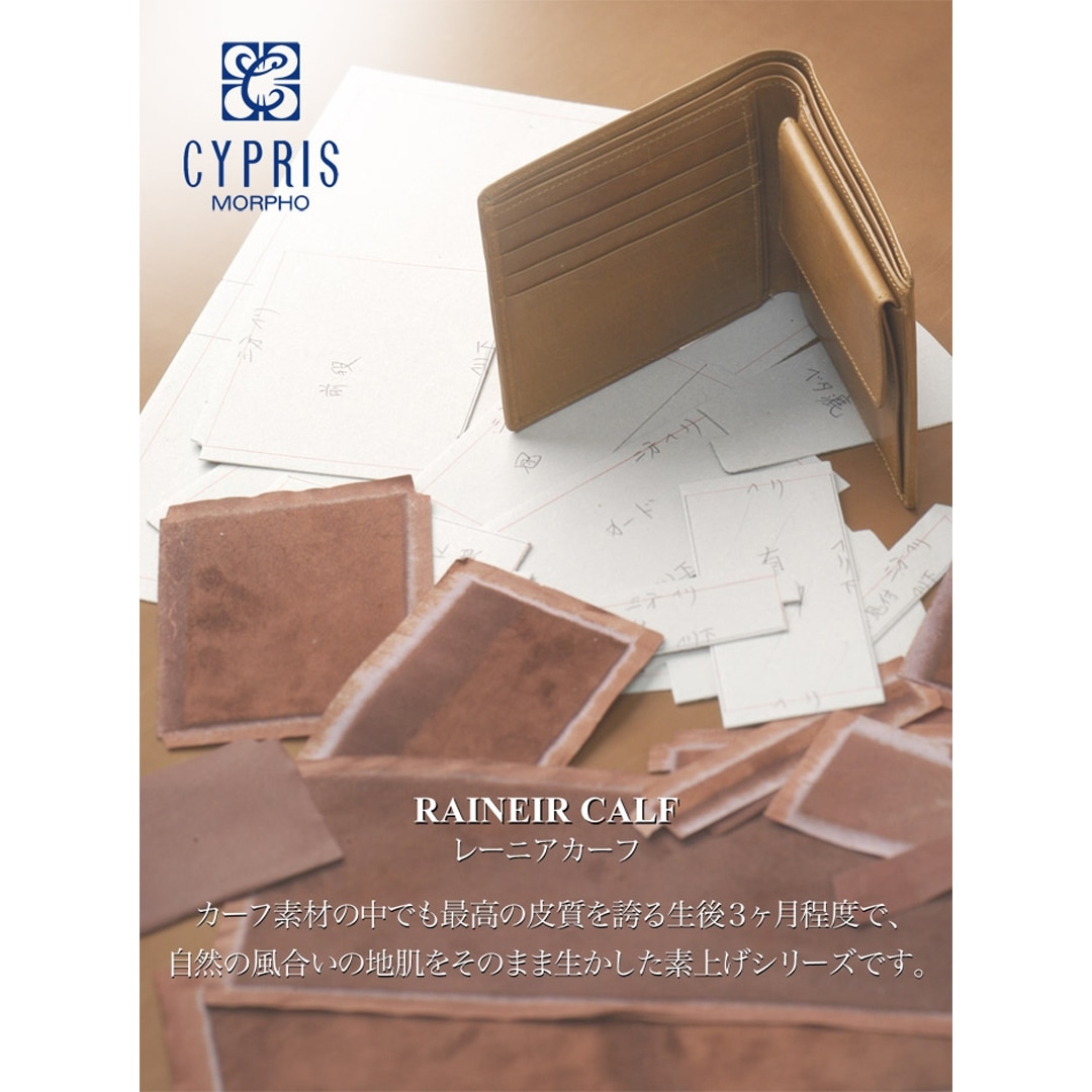 この商品は、 レーニアカーフと呼ばれるカーフ素材の中でも上質な皮質を持った生後三か月位の牛の革を贅沢に使用しております。