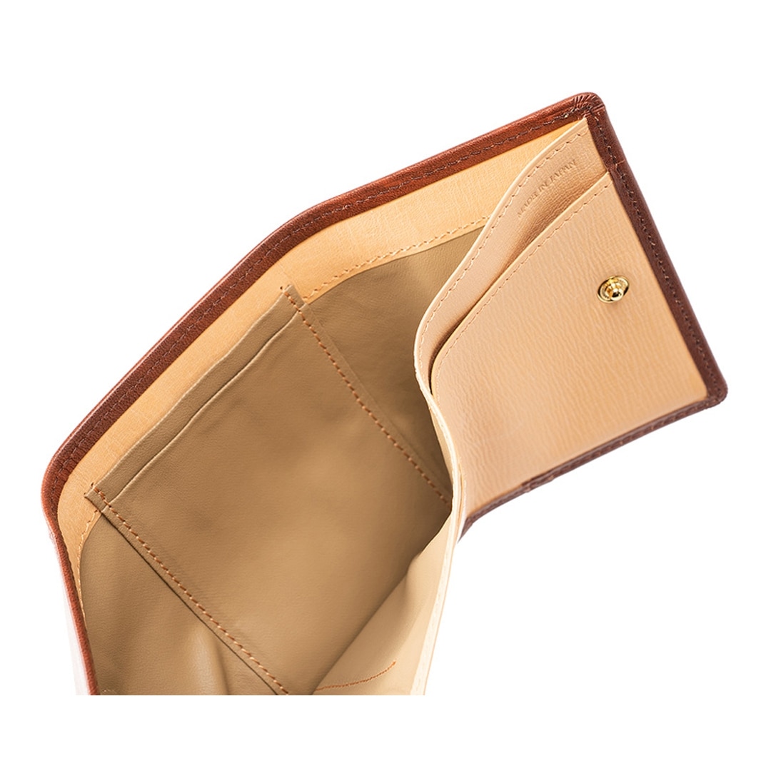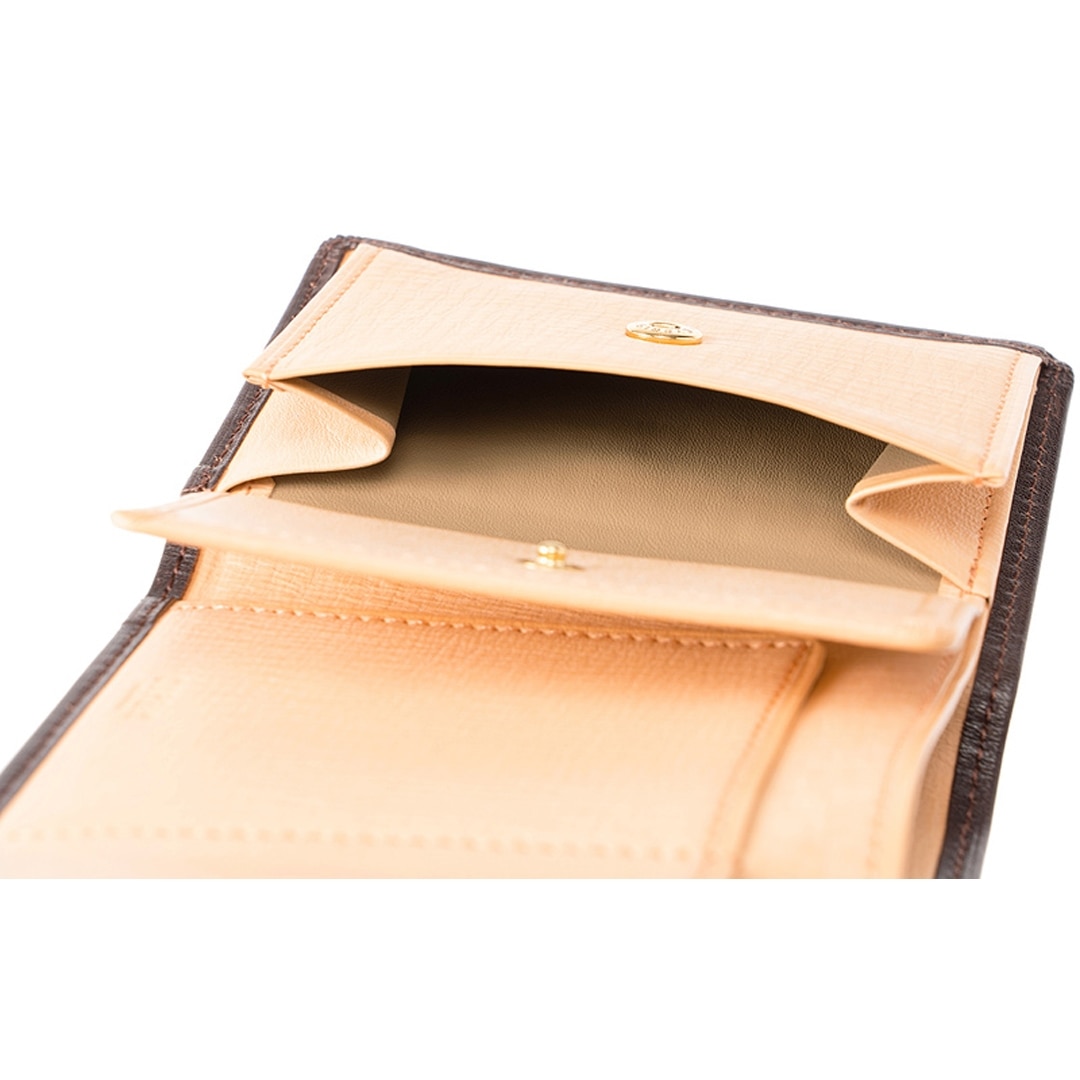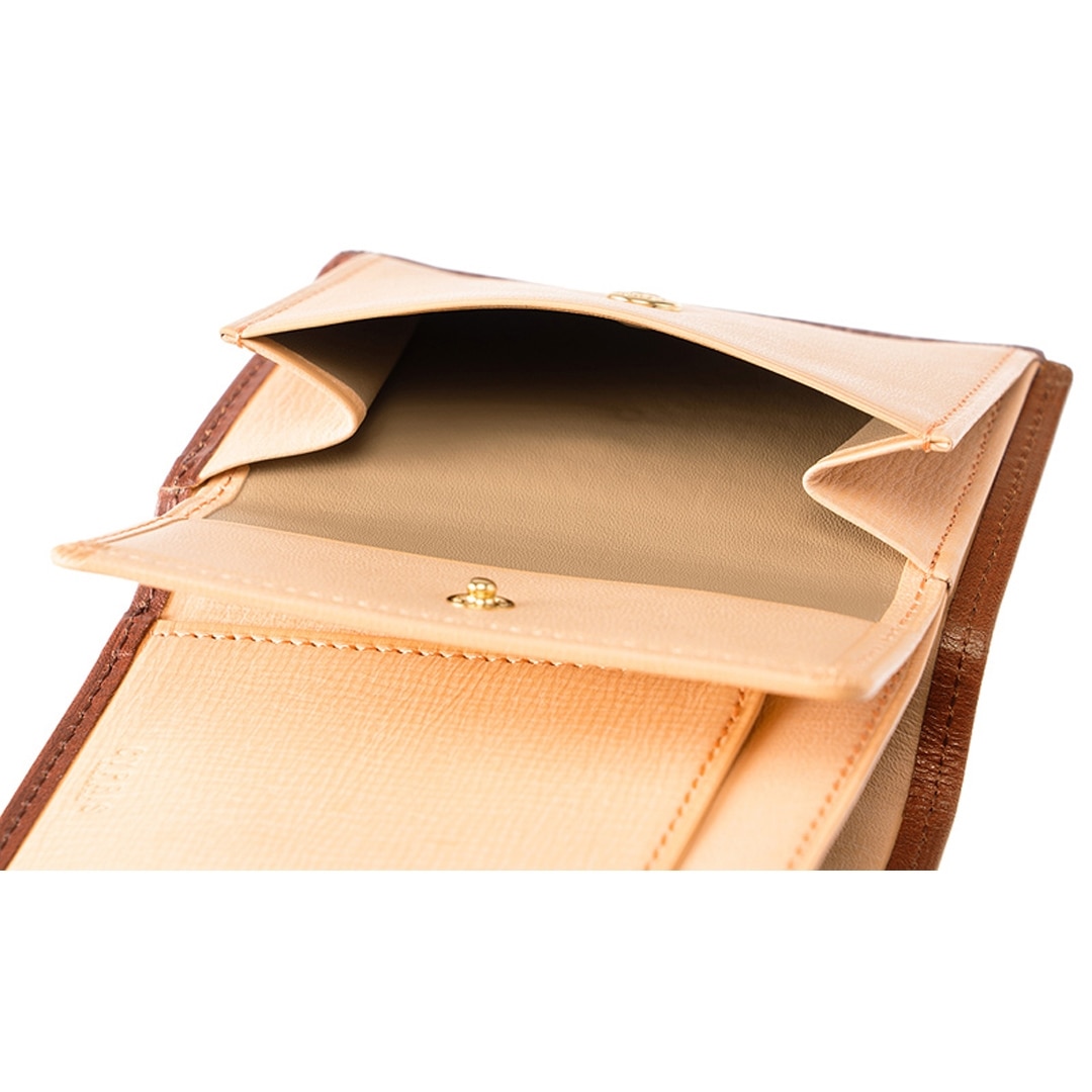 内面にはロウ引き加工したヌメ革をあわせたコンビネーションの美しい革小物です。