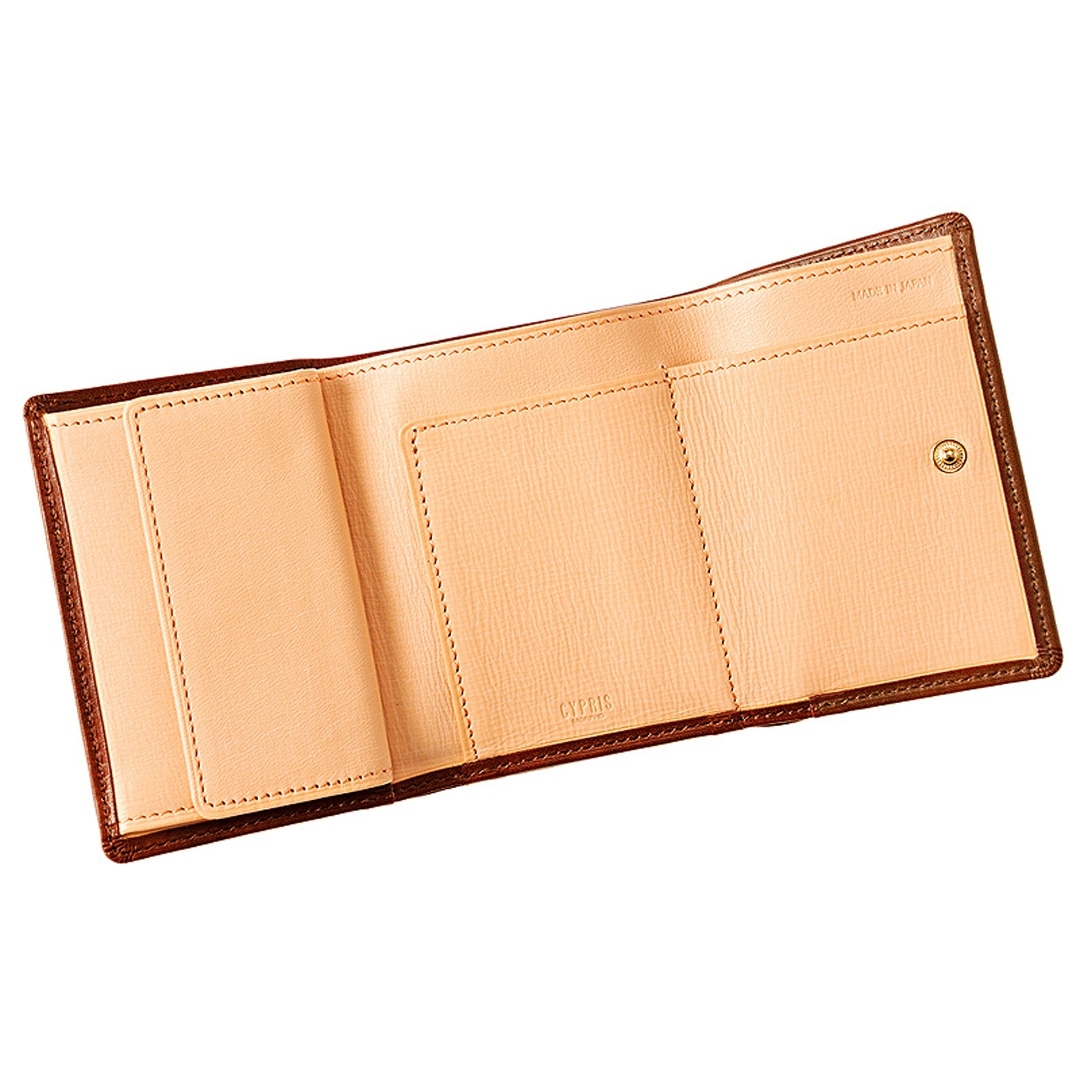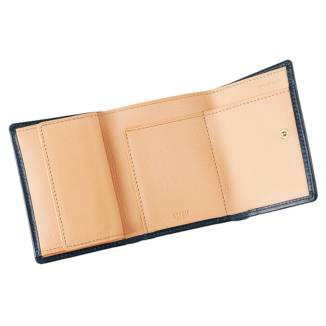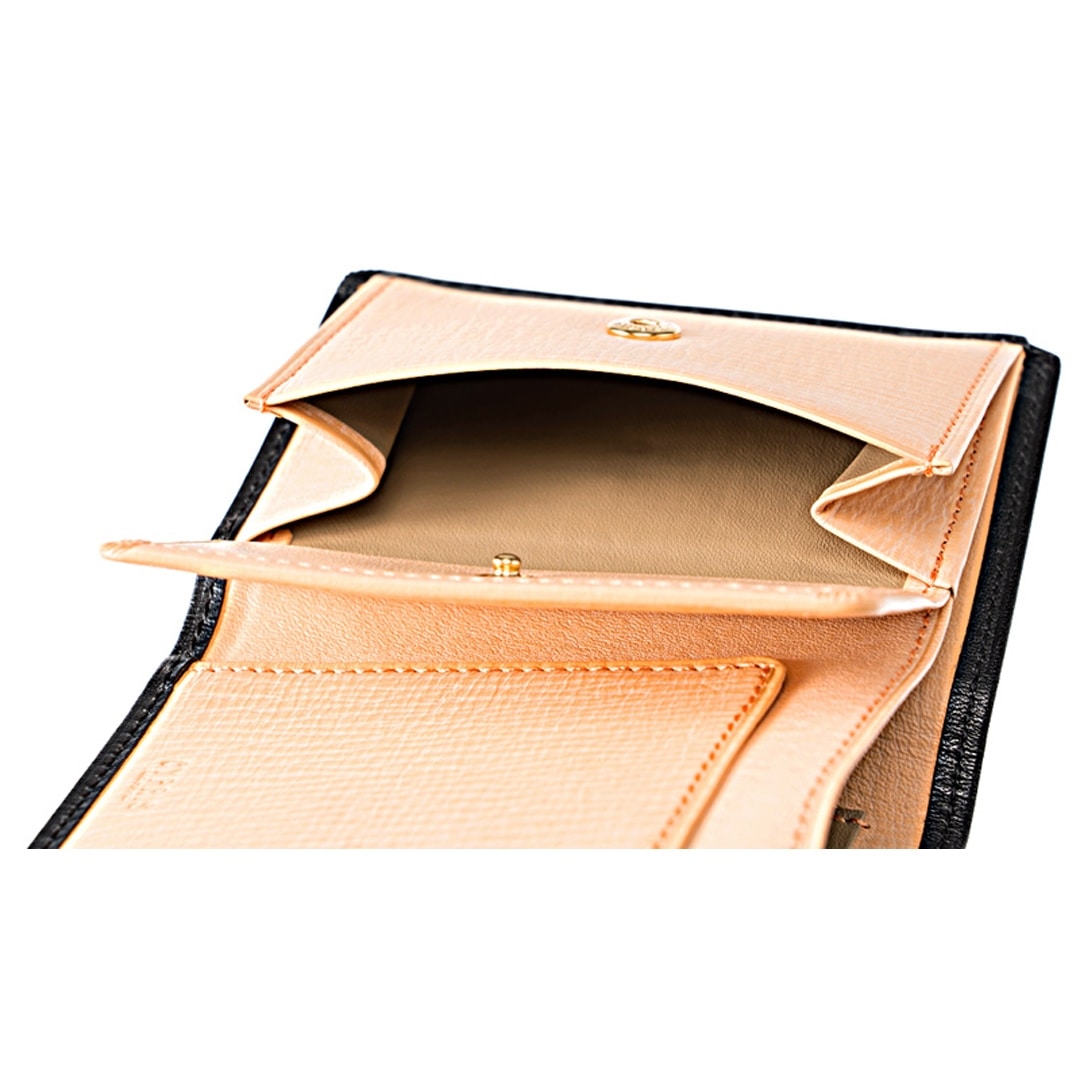 内面にはロウ引き加工したヌメ革をあわせたコンビネーションの美しい革小物です。