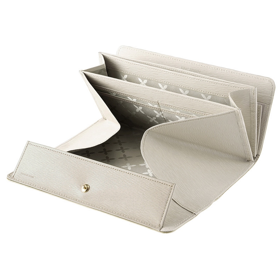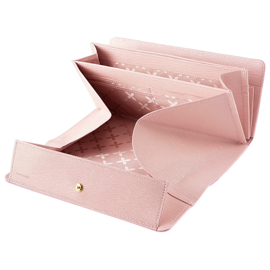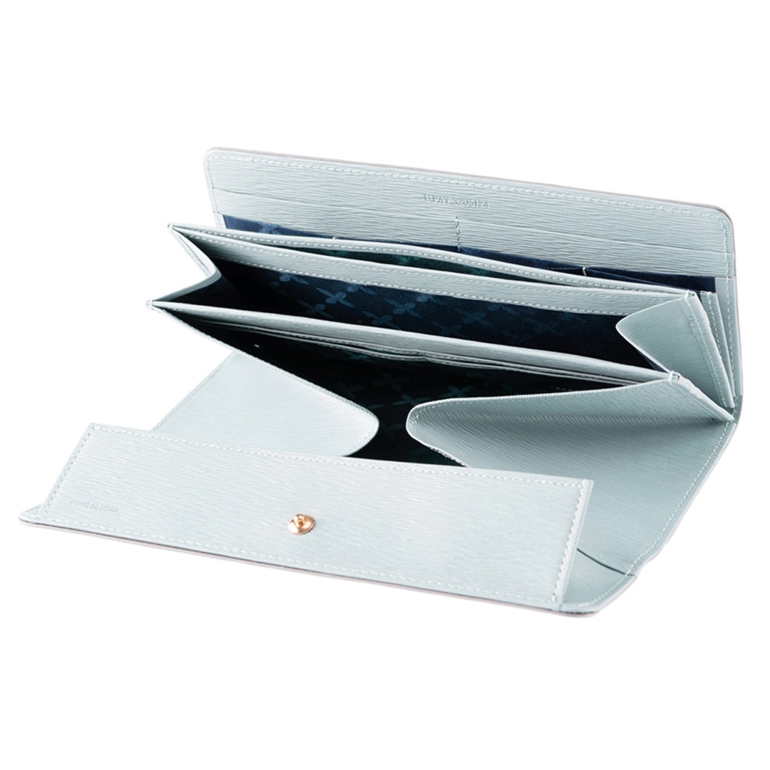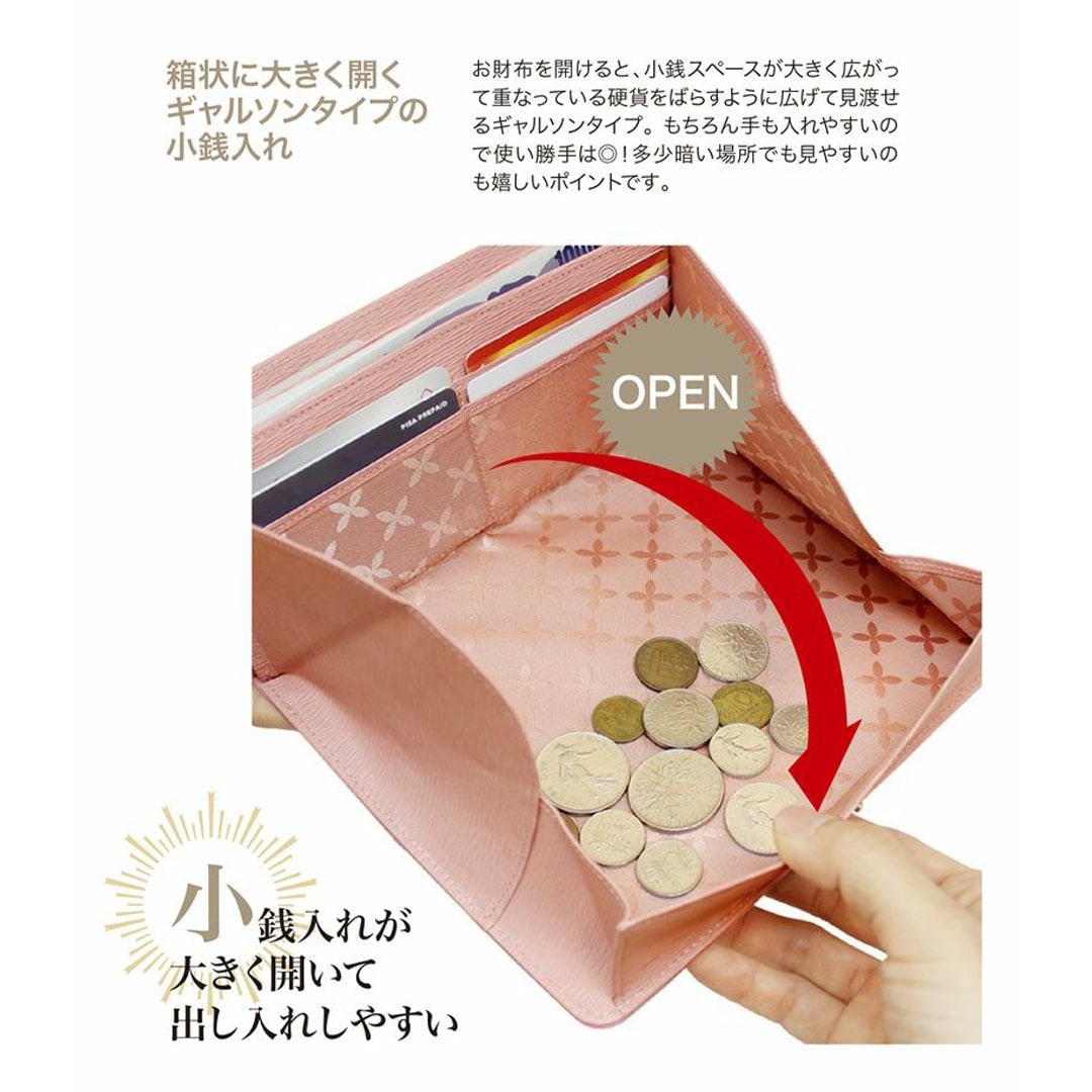 お財布を開けると、小銭スペースが大きく広がって重なっている硬貨をばらすように広げて見渡せるギャルソンタイプ。