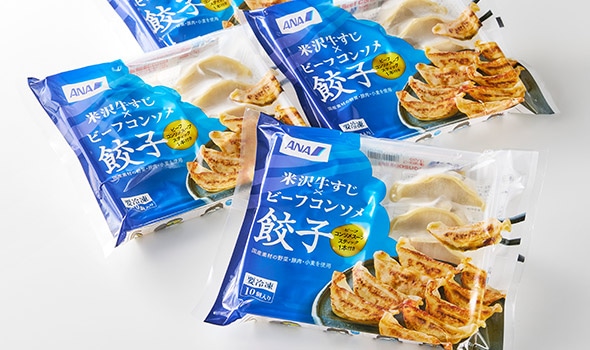機内で提供しているビーフコンソメスープをゼラチン状にして餡の中に混ぜ込みました。また、焼き上げる際も別添のコンソメスティックをお湯に溶かして蒸し焼きにすると、コンソメの香りをより楽しむことができます。