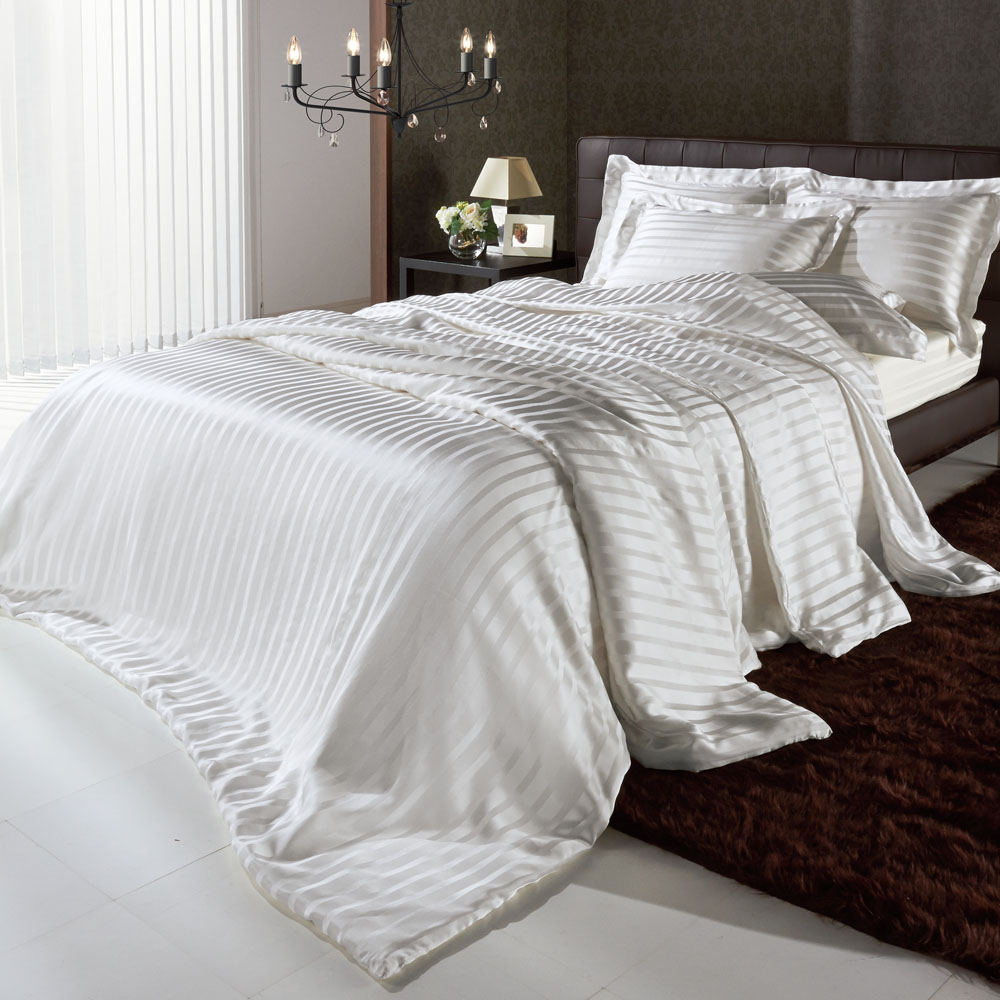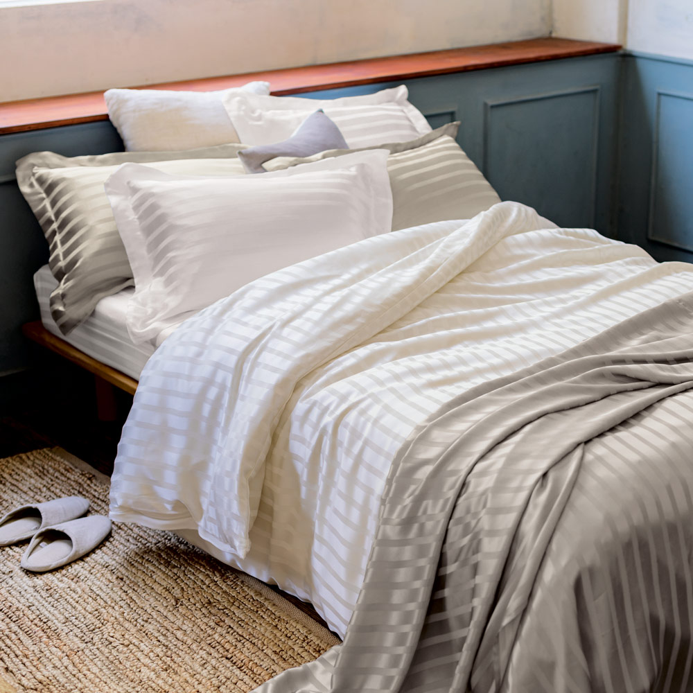 美しい光沢に上品なストライプ柄が加わり、より一層ラグジュアリーに。