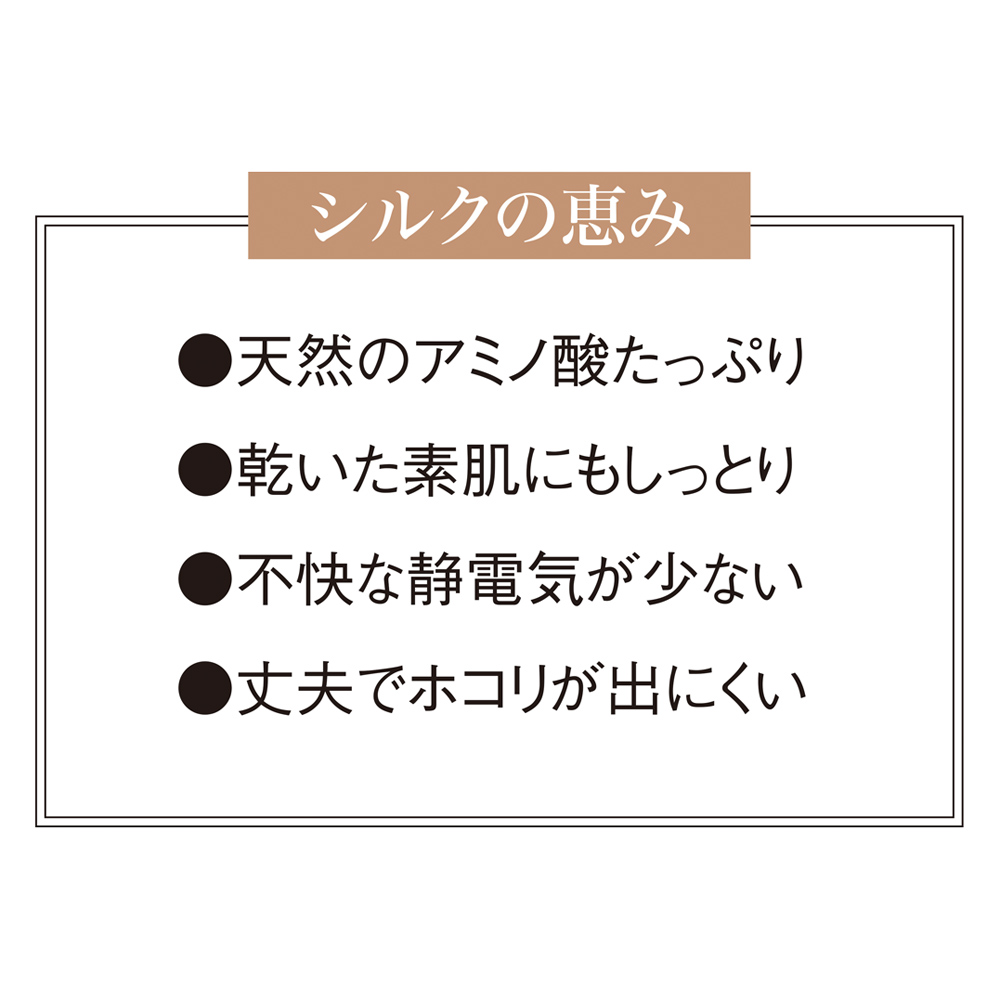シルクの光沢をひときわ美しく仕上げたサテン織り。しっとりかつリッチな風合いは、髪や肌の乾燥や摩擦が気になる方にもおすすめです。