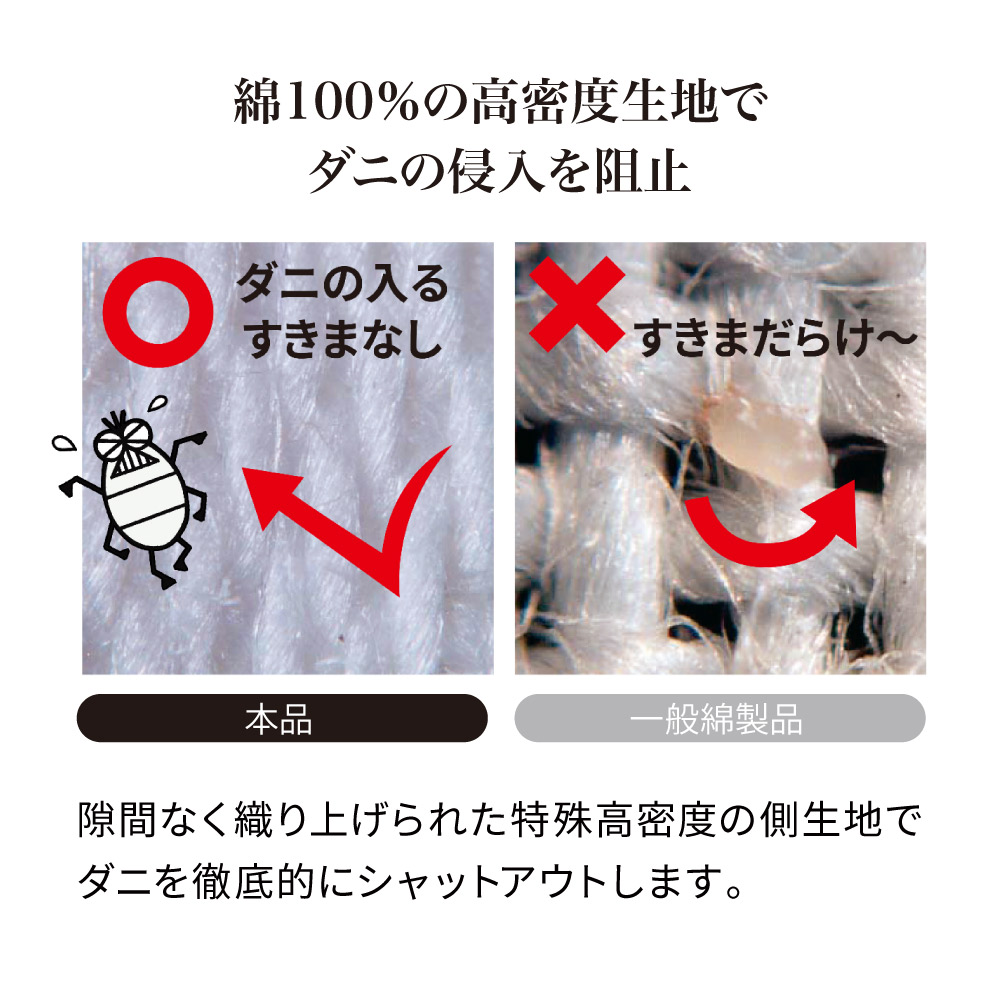 特殊な高密度生地織でダニの卵までシャットアウト!