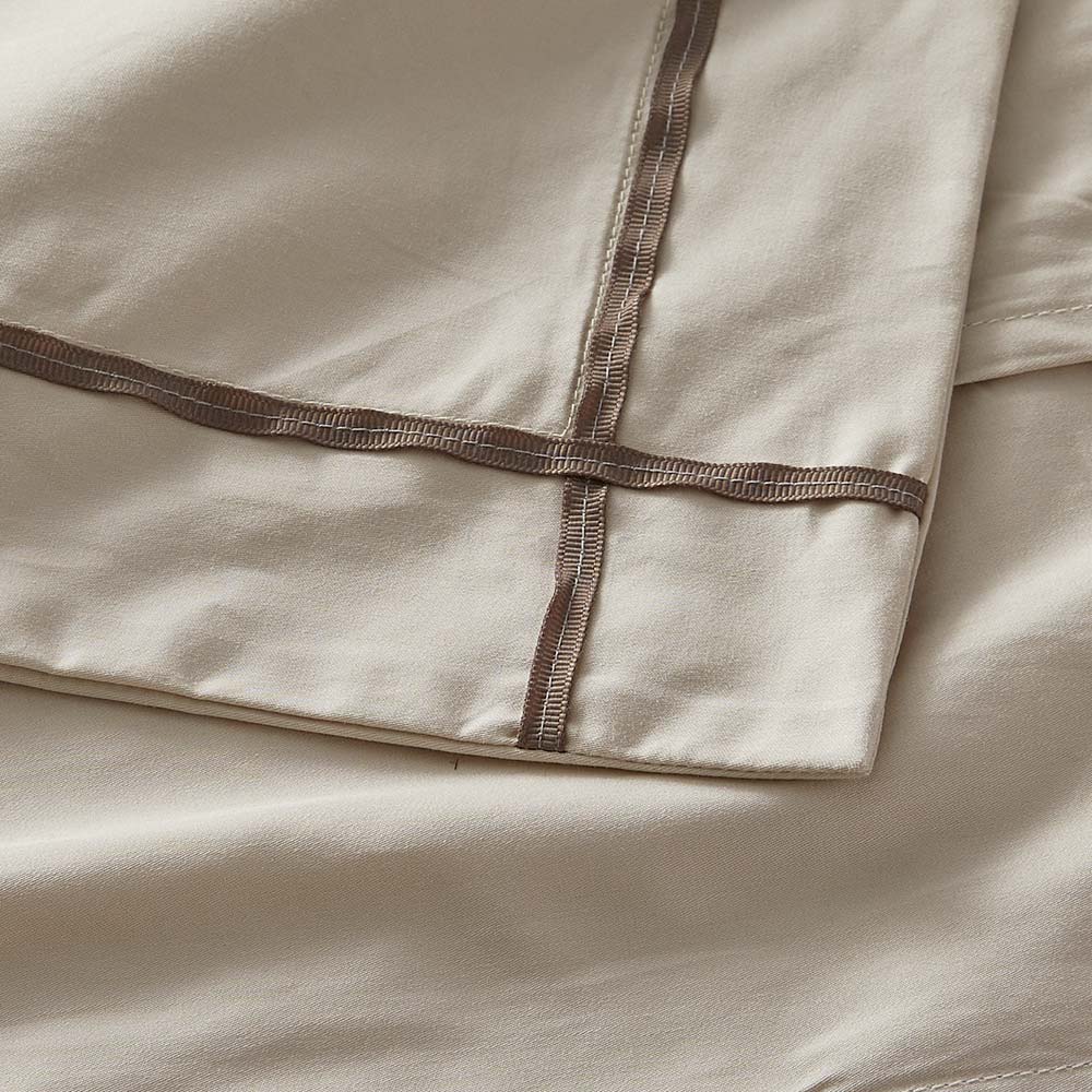 なめらかな肌触りに心が満たされる 超長綿サテン高密度カバーリングシリーズのピローケース。繊維の宝石と呼ばれる完熟度の高い良質な超長綿を使用。上質な糸の持つ自然な光沢を活かした美しい生地を、国内で丁寧に縫製し、飽きのこない、長く愛せるデザインにこだわりました。■良質な超長綿サテンのカバーリング繊維の宝石と呼ばれる完熟度の高い良質な超長綿を細番手の糸に仕上げ、織り上げました。吸湿性・発散性が良く、軽くてソフトな風合い。まるでシルクのような艶があり、肌触りの滑らかな肌触り。上質な糸の持つ自然な光沢が美しい高密度のサテン生地です。洗濯後も風合いは保たれ、毎日体を包み込む大切なファブリックとして愛用してもらえます。■広幅生地で継ぎ目が入らず、どこまでもなめらか特別に織り上げた250cmと広幅の生地のため、ハギ(生地の継ぎ目)が入らず、どこまでもなめらかな肌触りです。■国内で丁寧に縫製国内で丁寧に縫製。飽きのこない長く愛せるカバーリングをつくりました。■スタイリッシュなデザインリボンテープを格子にあしらうことで、モダンでスタイリッシュな印象に。テープの色は、ブルーとライトグレーとグレージュの3色。ハウススタイリング発ファブリックシリーズ 【TOUCH&FEEL by HOUSE STYLING】TOUCH&FEEL by HOUSESTYLING(タッチアンドフィール バイ ハウススタイリング)は、「肌が触れて、感じて、心が満たされる」ハウススタイリング発のファブリックシリーズ。超長綿、リネン、ウールなど上質な天然素材を中心に、シンプルでありながら、触れるだけで心から心地よいと感じるアイテムを展開いたします。機能性とデザイン性を重視しながらも、何より日々の生活に寄り添う、リラクシングな空間と、上質な時間を演出するハウススタイリングならではの贅沢なベーシックファブリックです。