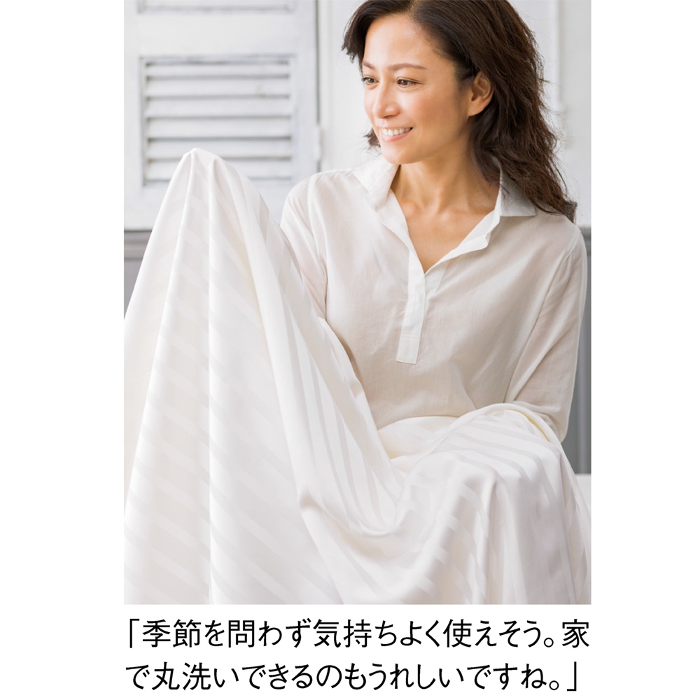 大人の女性を虜にするオールシルクシリーズ!良品良価を追求し、ようやく商品化できた厳選シルクのカバーリングシリーズ。光沢をまとう美しさ、しっとり優しい肌触りが魅力の高級シルク。そのシルクを溢れるほどに使用した贅沢で艶やかなサテン織りストライプ柄のカバーリングシリーズです。品質にこだわり洗濯も可能にしました。シルクは吸放湿性、保温性も優れ、かけ心地はまさにラグジュアリーの一言。【サイズ:シングルロング・セミダブルロング・ダブルロング・クイーンロング】前回価格より3000円 OFF。シングルロング:37980円(税込)⇒34980円(税込)セミダブルロング:41980円(税込)⇒38980円(税込)ダブルロング:45980円(税込)⇒42980円(税込)クイーンロング:52980円(税込)⇒49980円(税込)※前回価格は2024年12月〜2025年8月の販売価格です。「良品良価」を追及し、ようやく商品化!贅沢なオールシルクカバー。新色ローズが登場!上質なシルクを100%使用した贅沢カバーは、オールシーズンおススメ&お肌にもしっとり。この高品質と嬉しい機能がこの価格で手に入るのはディノスだけ!ニュアンスカラーがおしゃれな新色ローズが登場しました!洗濯OK!美しい光沢のサテン織りシルクカバー美しい光沢のサテン織りのシルクカバーはストライプの柄で上品&ラグジュアリーに。シルクは洗えないものが多い中、こだわって洗濯可能にしました。いつでも清潔を保てます。オールシーズン使える布団内のムレによる不快感を防ぎ、さらさら快適&あったか空間にしてくれます。女性に嬉しい、シルクの恵みたっぷり●天然のアミノ酸たっぷり●乾いた素肌にもしっとり●不快な静電気が少ない●丈夫でホコリが出にくい●吸放湿性がありさらさら