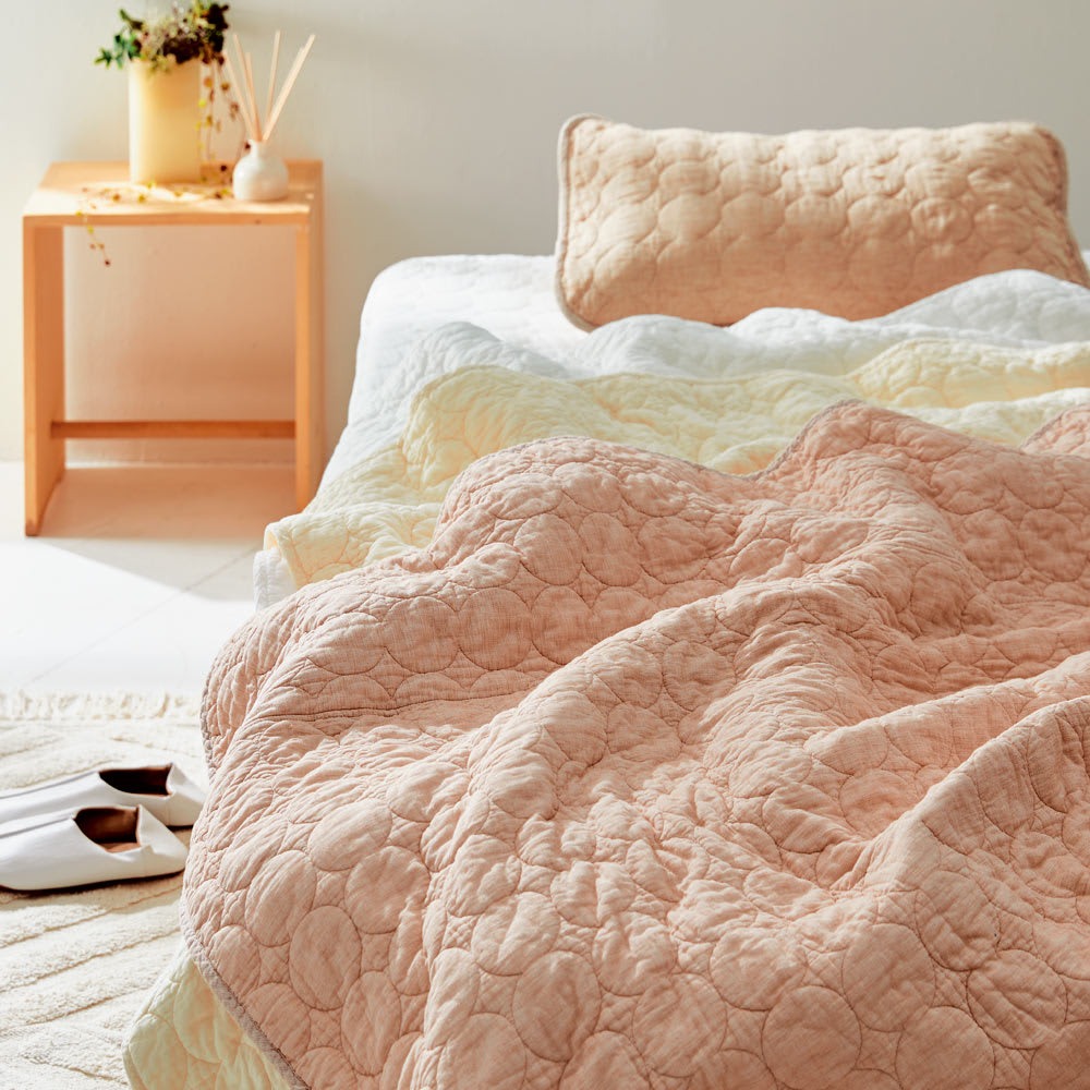 洗うたびにやわらかく、気持ちの良い肌触り!医療用純度の脱脂綿&高密度ガーゼでできたパシーマは、口コミで大人気。中わた増量のパシーマ(R)EXはディノスだけで買えます。医療用純度の脱脂綿&高密度ガーゼで洗うほどふんわりやわらか。中わたの脱脂綿が暖かい空気を含むので冬でもぬくぬく暖かです。1年中使える気持ち良さで手放せません。洗えばあらうほどに柔らかくなる風合いはパシーマ(R)ならでは。日本製で、安全性を検査し認証する「エコテックス規格100」の「製品部類1(乳幼児製品)」の認証を取得しています。脱脂綿とガーゼでできた、とびきりやさしい寝具ですパシーマは医療用純度のレベルまで油分や不純物を取り除いた脱脂綿やガーゼでできた、シンプルな寝具。一度使うと虜になる使い心地で、ディノス販売から20年以上経った今も口コミでファンを増やし続けるロングセラー商品です。幾層にも重ねた脱脂綿の中わたを、綿100%の高密度ガーゼで挟んだ多重構造。汗や湿気をすばやく吸い取るからサラサラが長続き。夏に快適なのはもちろん、冬もムレずに暖かです。洗濯ネット無しで丸洗いでき乾きも早いので、梅雨時期や真冬も気軽に洗えます。洗うほどに中わたがほぐれて空気をたっぷり含み、肌に馴染む「とろふわ〜」な風合いに育っていきます。350種類以上の有害化学物質が含まれていないことを証明する、世界最高水準の安全な繊維製品の証「エコテックススタンダード100」。その中でも最も厳しい「クラス1(乳幼児製品)」の認証を取得しています。赤ちゃんや肌が敏感な方、ご年配の方までご愛用いただけます。パシーマは、福岡県うきは市で医療用の脱脂綿・ガーゼを製造していた「龍宮株式会社」の先代社長が開発。自身が重い肌の不調に悩んでいたのがきっかけでした。先代の想いを受け継ぎ、現在も糸・布・中わたの加工・染色・縫製仕上まで、すべて国内の工場で真心こめて製造しています。お肌にやさしく洗いやすいのもうれしいピローケースお顔や首に直接触れるピローケースこそ肌にやさしいパシーマを。気軽に洗えて清潔を保てます。ディノス限定仕様でより快適に使いやすくピローケースはメーカー通常品と比べて中わた約30%増量。ふんわり感も吸水性もアップしています。ディノス限定仕様でより快適に使いやすくふっくらおしゃれな丸キルトを採用。糸から染め上げた先染めタイプは上質感とニュアンスのある仕上がり。先染めタイプはこだわりのピンストライプ×無地のリバーシブル仕様。糸自体が染色されているので、経糸と緯糸のミックス感により、深みのある色合いが生まれます。