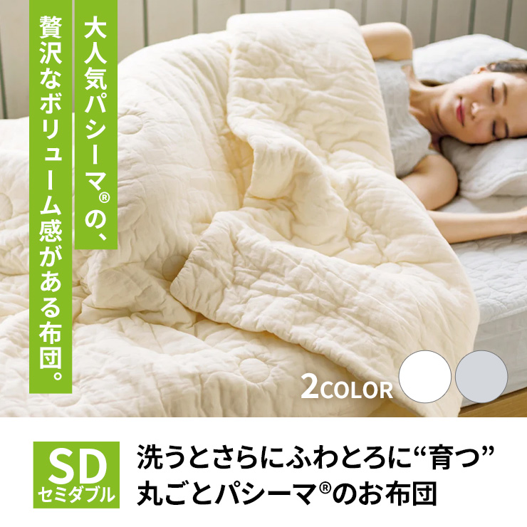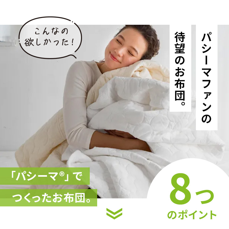 洗うとさらにふわとろに“育つ”丸ごとパシーマ(R)のお布団は、季節の変わり目にも大活躍。