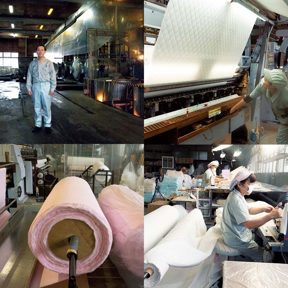 原綿の精錬や縫製など、厳しい品質管理のもと自社で一貫生産しています。