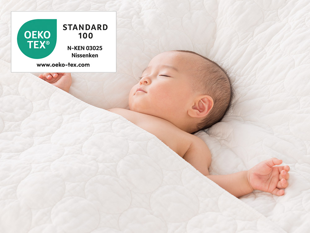 国際規格「エコテックス」で最も厳しい「クラスI(乳幼児製品)取得。赤ちゃんや肌が敏感な方、ご年配の方までご愛用いただけます。