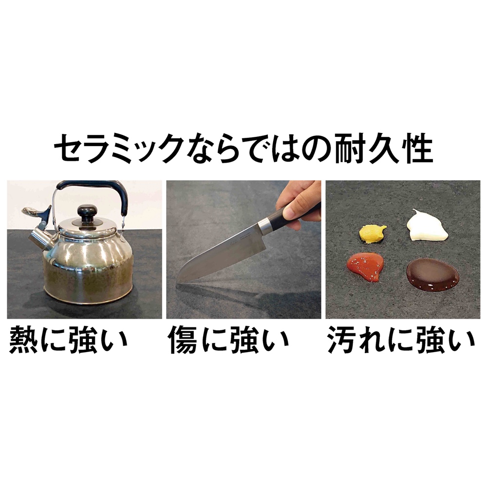 ●熱い鍋、やかんなどを直接置いても変色・変形しません。●硬度が高く、金属などで擦っても傷がつきにくい。●コーヒーや醤油などをこぼしても染み込みにくくお手入れ簡単。