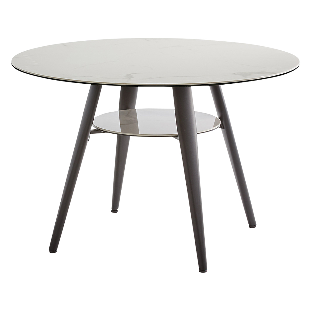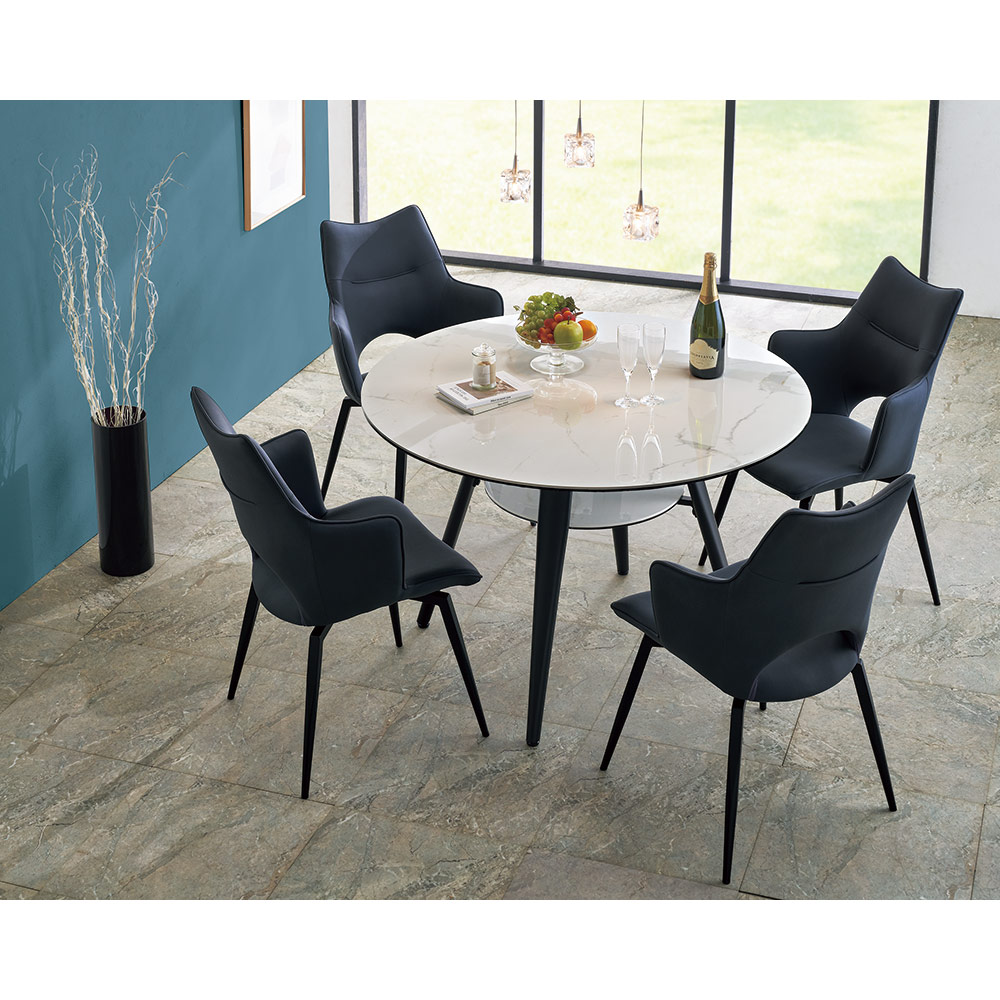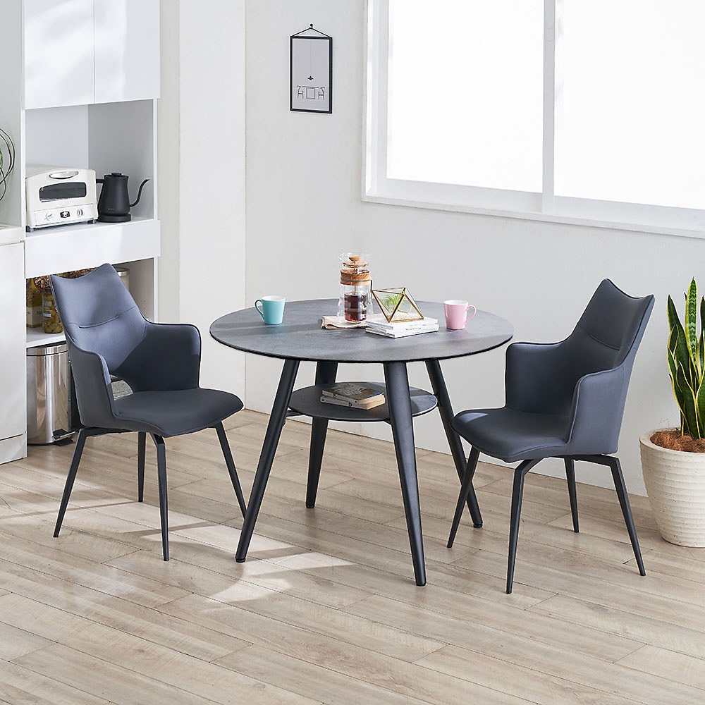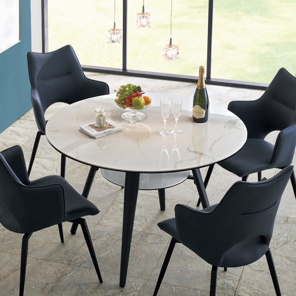 モダンで機能的なセラミックで上質なダイニング空間に。熱やキズ、汚れに強いセラミック天板は、ストレスなく、長く美しく使えるのが魅力。ブラックスチールとの組合せでクールモダンな雰囲気を醸し出しますモダンで機能的なセラミックで上質なダイニング空間に。熱やキズ、汚れに強いセラミック天板は、ストレスなく、長く美しく使えるのが魅力。ブラックスチールとの組合せでクールモダンな雰囲気を醸し出します"機能性の高い「セラミック」4つのおすすめポイントをご紹介(1)熱に強い耐熱性が高く、短時間であれば高温のフライパンや鍋などを直接置いても大丈夫です。(しかし、天板にとっては良い事ではないので、出来るだけ何かを敷いて頂くことをお薦め致します。)(2)傷がつきにくいセラミック天板には塗装の膜が無いので、テーブル表面を傷める心配がありません。例えば、金属より高硬度なため、まな板代わりに使っても傷がつきません。タワシでゴシゴシ洗っても大丈夫な仕様になっています。(3)汚れに強いセラミックトップは熱に強く、傷がつきにくいだけではなく、食材や油などの汚れも染み込みません。紫外線で色あせることもありませんので、いつまでもきれいな状態を保ちます。さらにアルコールスプレーなどを使用することで、除菌もできるのでいつでも清潔にお使い頂けます。(4)特徴のある素材感、高級な質感セラミックトップの表面は、グレー系カラーは焼きものならではの凹凸のあるテクスチャー、ホワイト系は光沢のあるリッチで滑らかな質感。従来の天板素材とは全く異なる素材感です。天板にはセラミックを使用。熱や傷に強く毎日のお手入れがしやすい素材。◆傷や熱に強いセラミック天板を使用。◆グレー系カラーは焼きものならではの凹凸のあるテクスチャーで素材感を楽しめる天板の仕様◆ホワイト系は光沢のあるリッチで滑らかな質感真ん中は棚つきなので天板をすっきり綺麗に!◆天板の下に約50cmの棚板がついているので、天板やカウンターに放って置きっぱなしになりがちな◆ティッシュやリモコン、たまに使う文房具などのちょい置きに便利。◆天板上はすっきりきれいに保ちやすいダイニングテーブル。◆棚部分も天板と同素材のセラミックを使用しているので見た目にもきれいな仕上がり。チェアは選べる2色2種類◆シリーズのチェアはライトグレーとダークグレーの2色をご用意致しました。◆チェアはアーム無・アームありの2種類をご用意。◆お部屋のテイストやお好みに合わせてお選び頂ける2脚セットです。"