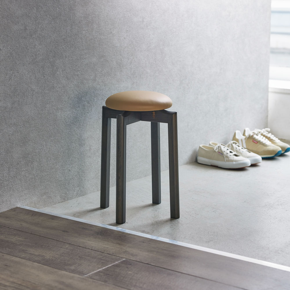 ちょこっと座れて、軽くて持ち運びが簡単、重ねて収納できるので場所も取りません。長く愛着を持って使用できるおしゃれな木製スツールを北の大地北海道からお届け。北海道ナラの木、北海道産牛革で旭川の家具職人が丁寧に仕上げたスツール。日本の風土にあった素材をプロの家具職人が使う人のことを考えながら作った商品。軽くて使いやすく、肌触りもよい。高い技術力と美しいデザインそして、壊れにくく長く使えるマッシュルームスツール。玄関で靴を履くとき、キッチンやカウンターでの作業椅子、来客用チェアとしても活躍します。軽くて持ち運びが簡単、重ねて収納できるので場所も取りません。脚部には「ここの木の家具・北海道プロジェクト」「HOKKAIDO LEATHER」の2つのブランドロゴがレーザー加工されています。※レーザー加工のロゴは木目・木の硬さなどにより濃淡が異なります。旭川家具「ここの木の家具・北海道プロジェクト」「北海道レザー」日本5大家具産地の一つに数えられ、木製家具の聖地としても知られる「旭川家具」。かつてヨーロッパへ輸出されていた良質な北海道産木材ですが近年、日本有数の保有量に回復した北海道の木材資源を活用するために、さらに、未来に立派な木を残していくために、あえて森を間引き、家具をつくり、また木を植えてサイクルを循環させていく「ここの木の家具・北海道プロジェクト」。また、海外から輸入するよりも運搬時のCO2削減に貢献する国産の家具用皮革「北海道レザー」の開発など、SDGsへの取組みを先駆けて行っています。その取組みにハウススタイリングが賛同し完成したのは、北海道産ナラ材と北海道レザーを掛合せた、こちらのマッシュルームスツール。環境に配慮するだけではなく、美しく便利で、心地よく、長く使える――。旭川家具が誇る熟練職人の高い技術と北の大地の恵みに育まれた、まさにサステナブルなスツールです。新築祝いやお引越し祝いなどにもおすすめ。ギフトにも贈りやすいコンパクトなBOX入り。付属の工具で簡単に組み立てができます。■「匠工芸」 TAKUMI KOUGEI日本有数の家具産地である北海道・旭川で1979年の創業以来、木製家具づくりを手掛けてきた「匠工芸」。“つくっているのは、心地です”を合言葉に、家具づくりの先にある座り心地、触り心地、使い心地などをなによりも大切に、現代の暮らしを楽しく美しくする家具を、日本伝統の木工技術を活かした職人の手仕事でつくりあげています。■「北海道産広葉樹ナラ」今回使用する木材は北の大地で育った北海道産広葉樹のナラ。寒冷地で育つため、木目が細かく詰まっているのが特徴です。家具、ウイスキー樽、フローリングなどに多く用いられます。北海道の木材に精通している三津橋産業で製材された合法木材です。■「北海道レザー」 HOKKAIDO LEATHER北海道の広大な大地と寒暖差が育む、きめ細やかで上質な皮を北海道・旭川の作田畜産で丁寧に原皮へと加工。その後、原皮は姫路の川善商店の高いなめし技術によって、日本の風土にあったハイクオリティな「北海道レザー」へと仕上げられています。また、食肉の副産物であり、アップサイクル素材である天然皮革を無駄なく活用し、地産地消していくことはサステナブルな社会への貢献にも。■【ウッドデザイン賞2024受賞】ウッドデザイン賞は木の良さや価値を再発見させる製品や取組について特に優れたものを消費者目線で評価し表彰する顕彰制度です。ライフスタイルデザイン部門に入賞。