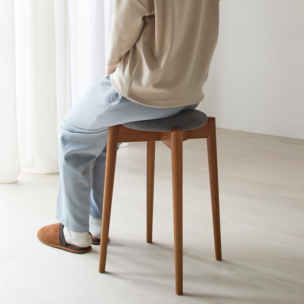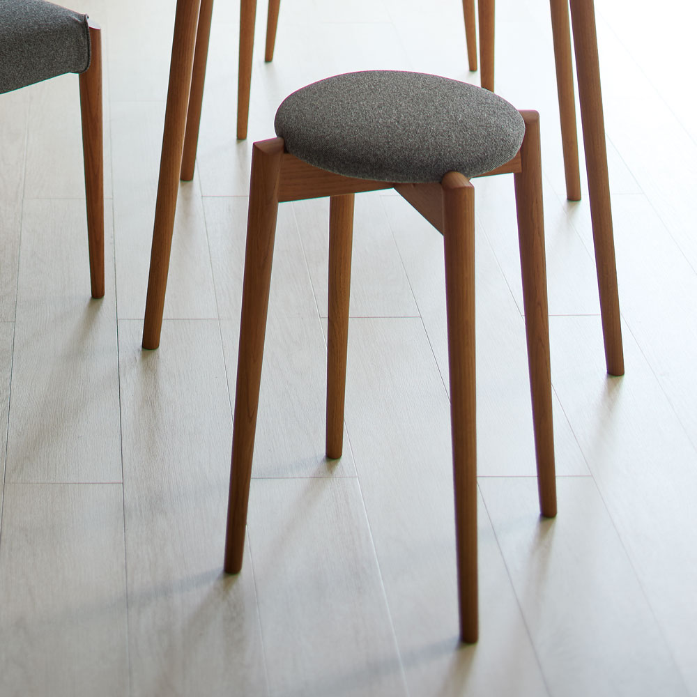 自然を感じる無垢材チェアが主役。コンパクトでも居心地のよいインテリア。温もりある木製家具で落ち着きとくつろぎを添えて心地よく。スタッキングできるコンパクトなスツール持ち運びに配慮した直径30cmのコンパクトな座面かつ軽量設計です。高さは45cm・50cm・55cmの3種類からお選びいただけます。らせん状にスタッキングできるので使わないときは省スペースで安定して収納できます。取り入れやすいヴィンテージカラーアンティーク家具やヴィンテージ家具との調和を楽しめるようなレッドブラウンの家具に仕上げました。木目を生かしたデザインで他の家具と合わせてセンスアップできるシリーズです。国産材を使用した飛騨の家具家具用としての使用が難しいとされる直径26cmに満たない国産小径木と、板取りで残った辺材を材料にしています。欠点ともなる白太と赤太の濃淡を木の魅力として捉え、デザインに生かした、資源を大切にする取り組みです。 安心の10年保証お買い上げの時に添付される「使用上のご注意」に従った正常な使用状態で、製品の木部が万一破損・不具合が生じた場合は日進木工の保証規定に基づいて無償修理させて頂きます。また10年を過ぎましても愛着のある家具を有償修理の対応もしております。【日進木工|nissin】法隆寺などの建立に関わった宮大工の流れを汲む飛騨の木工。日進木工は北欧テイストに合う繊細なシルエットと耐久性を両立した家具に定評があります。ハウススタイリングは、日進木工(にっしんもっこう)の正規販売店ですディノス・ハウススタイリングは、日進木工(にっしんもっこう)の製品の正規販売店です。リプロダクト、ジェネリックと称するコピー商品は販売しておりません。