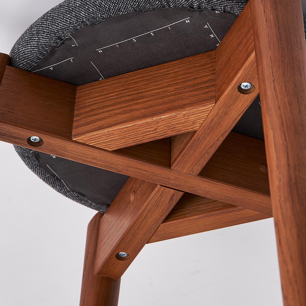 座面はチェアと同じ生地の張地でダークグレーです。