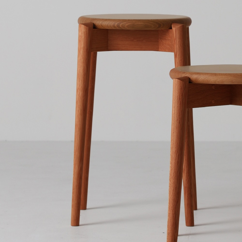 自然を感じる無垢材チェアが主役。コンパクトでも居心地のよいインテリア。温もりある木製家具で落ち着きとくつろぎを添えて心地よく。スタッキングできるコンパクトなスツール持ち運びに配慮した直径30cmのコンパクトな座面かつ軽量設計です。高さは43.5cm・48.5cm・53.5cmの3種類からお選びいただけます。らせん状にスタッキングできるので使わないときは省スペースで安定して収納できます。板座タイプは、座面がフラットなので、花台など飾り台としてもおすすめです。取り入れやすいヴィンテージカラーアンティーク家具やヴィンテージ家具との調和を楽しめるようなレッドブラウンの家具に仕上げました。木目を生かしたデザインで他の家具と合わせてセンスアップできるシリーズです。国産材を使用した飛騨の家具家具用としての使用が難しいとされる直径26cmに満たない国産小径木と、板取りで残った辺材を材料にしています。欠点ともなる白太と赤太の濃淡を木の魅力として捉え、デザインに生かした、資源を大切にする取り組みです。 安心の10年保証お買い上げの時に添付される「使用上のご注意」に従った正常な使用状態で、製品の木部が万一破損・不具合が生じた場合は日進木工の保証規定に基づいて無償修理させて頂きます。また10年を過ぎましても愛着のある家具を有償修理の対応もしております。【日進木工|nissin】法隆寺などの建立に関わった宮大工の流れを汲む飛騨の木工。日進木工は北欧テイストに合う繊細なシルエットと耐久性を両立した家具に定評があります。ハウススタイリングは、日進木工(にっしんもっこう)の正規販売店ですディノス・ハウススタイリングは、日進木工(にっしんもっこう)の製品の正規販売店です。リプロダクト、ジェネリックと称するコピー商品は販売しておりません。