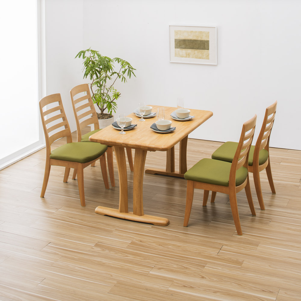 やさしくカーブを描いた天然木の角丸仕上げが特徴の「角丸優しいダイニングシリーズ」。小さなお子様やご年配の方まで、家族みんなが使いやすい配慮が詰まったダイニングシリーズです。長い期間ご使用いただけるよう丈夫な設計になっています。豊富なバリエーションによる組み合わせで、様々な暮らしのシーンに寄り添います。こちらの商品は左右の出入りがしやすい2本脚タイプのテーブルです。回転チェアとの組み合わせがおすすめです。天然木の角丸仕上げの優しいデザイン天然木をふんだんに使用した角丸仕上げの形状はやわらかくぬくもりのある感触です。ちょっとカバンを置いたり椅子を引いたときにぶつかっても、当たりがやわらかで安心です。定番の飽きの来ないデザインと、丈夫なラバーウッド材を使用した安定感のある設計になっているので、どんなインテリアにも合わせやすく長い期間ご使用いただけます。豊富なバリエーションから、暮らしに合った組み合わせをダイニングテーブルは2タイプ×4サイズ、チェアは肘無しタイプと肘あり回転タイプ、ベンチは2サイズをご用意しております。ご夫婦お二人でゆったり使いたいときは幅90タイプを、子どもがいらっしゃる4名以上のご家庭にはお部屋の広さに併せて幅125・140・165を選ぶなど、家族構成に合わせてコーディネートをお楽しみください。※テーブルとベンチの組み合わせ例(脚の間に入るサイズ) テーブル幅125、140→ベンチ幅100 テーブル幅160→ベンチ幅140