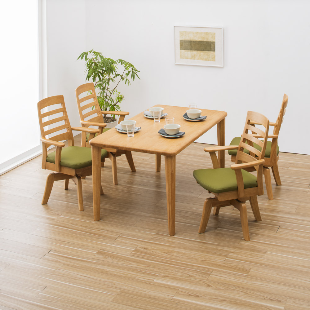 やさしくカーブを描いた天然木の角丸仕上げが特徴の「角丸優しいダイニングシリーズ」。小さなお子様やご年配の方まで、家族みんなが使いやすい配慮が詰まったダイニングシリーズです。長い期間ご使用いただけるよう丈夫な設計になっています。豊富なバリエーションによる組み合わせで、様々な暮らしのシーンに寄り添います。こちらの商品は定番の4本脚タイプです。安定感が良く、飽きのこないシンプルなデザインです。天然木の角丸仕上げの優しいデザイン天然木をふんだんに使用した角丸仕上げの形状はやわらかくぬくもりのある感触です。ちょっとカバンを置いたり椅子を引いたときにぶつかっても、当たりがやわらかで安心です。定番の飽きの来ないデザインと、丈夫なラバーウッド材を使用した安定感のある設計になっているので、どんなインテリアにも合わせやすく長い期間ご使用いただけます。豊富なバリエーションから、暮らしに合った組み合わせをダイニングテーブルは2タイプ×4サイズ、チェアは肘無しタイプと肘あり回転タイプ、ベンチは2サイズをご用意しております。ご夫婦お二人でゆったり使いたいときは幅90タイプを、子どもがいらっしゃる4名以上のご家庭にはお部屋の広さに併せて幅125・140・165を選ぶなど、家族構成に合わせてコーディネートをお楽しみください。※テーブルとベンチの組み合わせ例(脚の間に入るサイズ) テーブル幅125、140→ベンチ幅100 テーブル幅160→ベンチ幅140