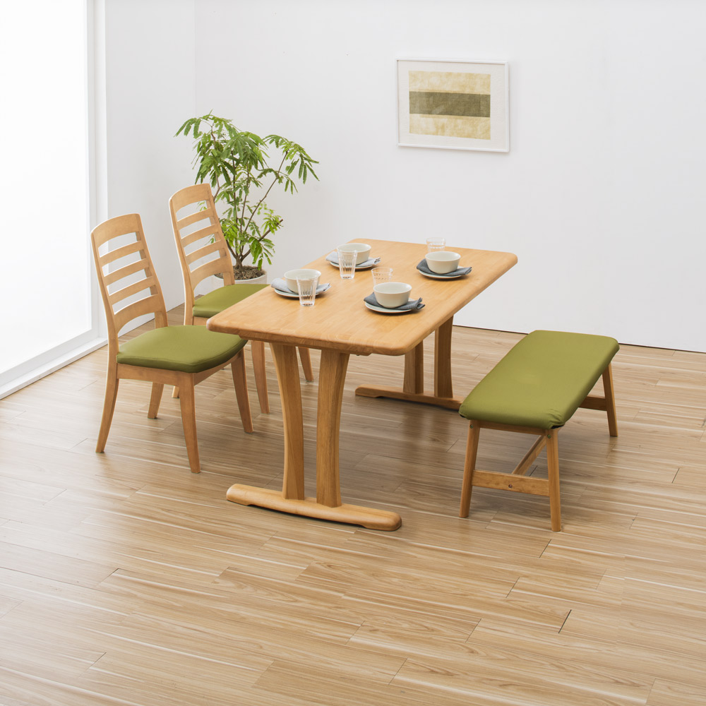 やさしくカーブを描いた天然木の角丸仕上げが特徴の「角丸優しいダイニングシリーズ」。小さなお子様やご年配の方まで、家族みんなが使いやすい配慮が詰まったダイニングシリーズです。長い期間ご使用いただけるよう丈夫な設計になっています。豊富なバリエーションによる組み合わせで、様々な暮らしのシーンに寄り添います。こちらの商品はダイニングチェアの肘無しタイプです。なめらかな曲線の形状が美しいデザインです。天然木の角丸仕上げの優しいデザイン天然木をふんだんに使用した角丸仕上げの形状はやわらかくぬくもりのある感触です。ちょっとカバンを置いたり椅子を引いたときにぶつかっても、当たりがやわらかで安心です。定番の飽きの来ないデザインと、丈夫なラバーウッド材を使用した安定感のある設計になっているので、どんなインテリアにも合わせやすく長い期間ご使用いただけます。豊富なバリエーションから、暮らしに合った組み合わせをダイニングテーブルは2タイプ×4サイズ、チェアは肘無しタイプと肘あり回転タイプ、ベンチは2サイズをご用意しております。ご夫婦お二人でゆったり使いたいときは幅90タイプを、子どもがいらっしゃる4名以上のご家庭にはお部屋の広さに併せて幅125・140・165を選ぶなど、家族構成に合わせてコーディネートをお楽しみください。