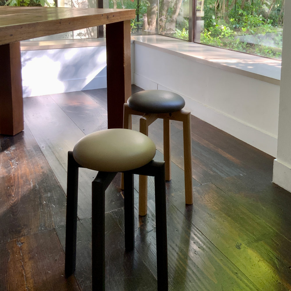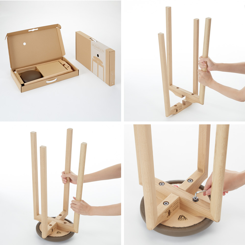 ちょこっと座れて、軽くて持ち運びが簡単、重ねて収納できるので場所も取りません。長く愛着を持って使用できるおしゃれな木製スツールを北の大地北海道からお届け。北海道ナラの木、北海道産牛革で旭川の家具職人が丁寧に仕上げたスツール。日本の風土にあった素材をプロの家具職人が使う人のことを考えながら作った商品。軽くて使いやすく、肌触りもよい。高い技術力と美しいデザインそして、壊れにくく長く使えるマッシュルームスツール。玄関で靴を履くとき、キッチンやカウンターでの作業椅子、来客用チェアとしても活躍します。軽くて持ち運びが簡単、重ねて収納できるので場所も取りません。脚部には「ここの木の家具・北海道プロジェクト」「HOKKAIDO LEATHER」の2つのブランドロゴがレーザー加工されています。※レーザー加工のロゴは木目・木の硬さなどにより濃淡が異なります。旭川家具「ここの木の家具・北海道プロジェクト」「北海道レザー」日本5大家具産地の一つに数えられ、木製家具の聖地としても知られる「旭川家具」。かつてヨーロッパへ輸出されていた良質な北海道産木材ですが近年、日本有数の保有量に回復した北海道の木材資源を活用するために、さらに、未来に立派な木を残していくために、あえて森を間引き、家具をつくり、また木を植えてサイクルを循環させていく「ここの木の家具・北海道プロジェクト」。また、海外から輸入するよりも運搬時のCO2削減に貢献する国産の家具用皮革「北海道レザー」の開発など、SDGsへの取組みを先駆けて行っています。その取組みにハウススタイリングが賛同し完成したのは、北海道産ナラ材と北海道レザーを掛合せた、こちらのマッシュルームスツール。環境に配慮するだけではなく、美しく便利で、心地よく、長く使える――。旭川家具が誇る熟練職人の高い技術と北の大地の恵みに育まれた、まさにサステナブルなスツールです。新築祝いやお引越し祝いなどにもおすすめ。ギフトにも贈りやすいコンパクトなBOX入り。付属の工具で簡単に組み立てができます。■「匠工芸」 TAKUMI KOUGEI日本有数の家具産地である北海道・旭川で1979年の創業以来、木製家具づくりを手掛けてきた「匠工芸」。“つくっているのは、心地です”を合言葉に、家具づくりの先にある座り心地、触り心地、使い心地などをなによりも大切に、現代の暮らしを楽しく美しくする家具を、日本伝統の木工技術を活かした職人の手仕事でつくりあげています。■「北海道産広葉樹ナラ」今回使用する木材は北の大地で育った北海道産広葉樹のナラ。寒冷地で育つため、木目が細かく詰まっているのが特徴です。家具、ウイスキー樽、フローリングなどに多く用いられます。北海道の木材に精通している三津橋産業で製材された合法木材です。■「北海道レザー」 HOKKAIDO LEATHER北海道の広大な大地と寒暖差が育む、きめ細やかで上質な皮を北海道・旭川の作田畜産で丁寧に原皮へと加工。その後、原皮は姫路の川善商店の高いなめし技術によって、日本の風土にあったハイクオリティな「北海道レザー」へと仕上げられています。また、食肉の副産物であり、アップサイクル素材である天然皮革を無駄なく活用し、地産地消していくことはサステナブルな社会への貢献にも。■【ウッドデザイン賞2024受賞】ウッドデザイン賞は木の良さや価値を再発見させる製品や取組について特に優れたものを消費者目線で評価し表彰する顕彰制度です。ライフスタイルデザイン部門に入賞。