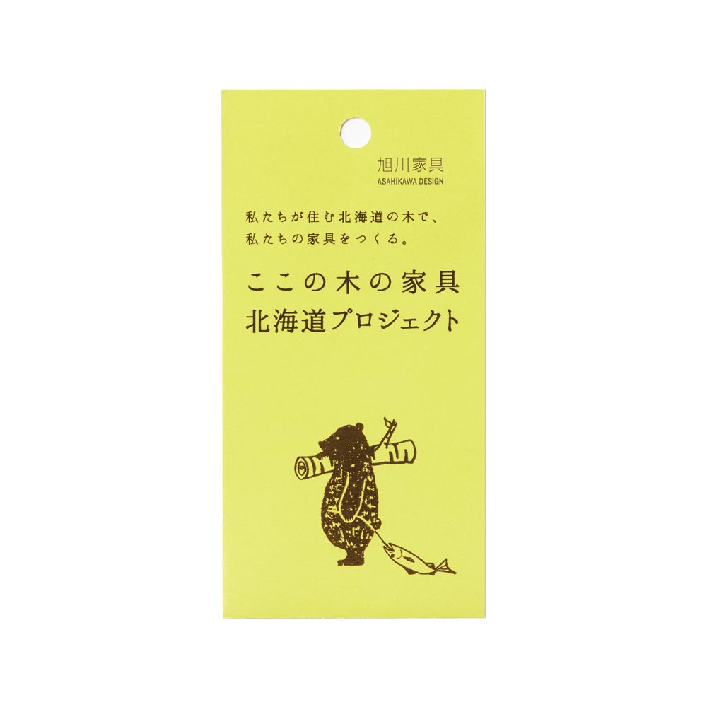 旭川家具 「ここの木の家具・北海道プロジェクト」。定義は木部の外観表面の80%以上が北海道で伐採された広葉樹であること。