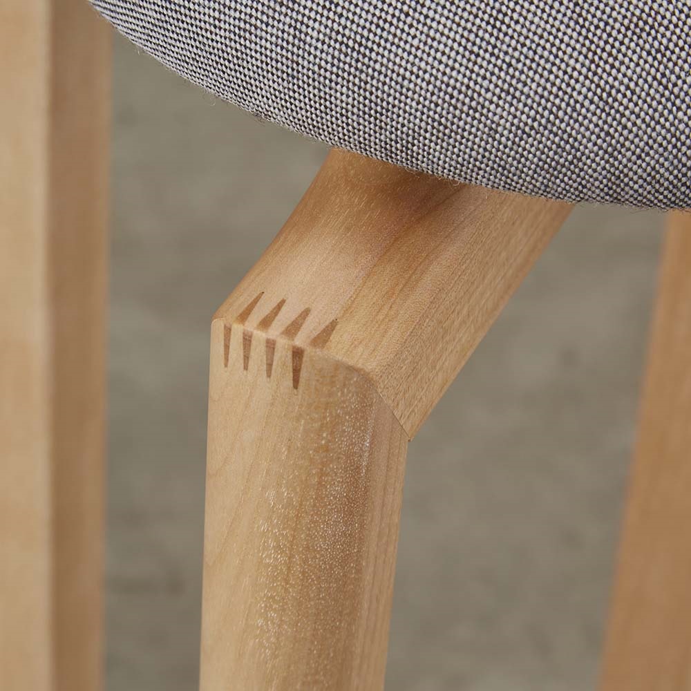 脚部は、材と材を互い違いで接合することで強度と耐久性を高めたフィンガージョイント加工。