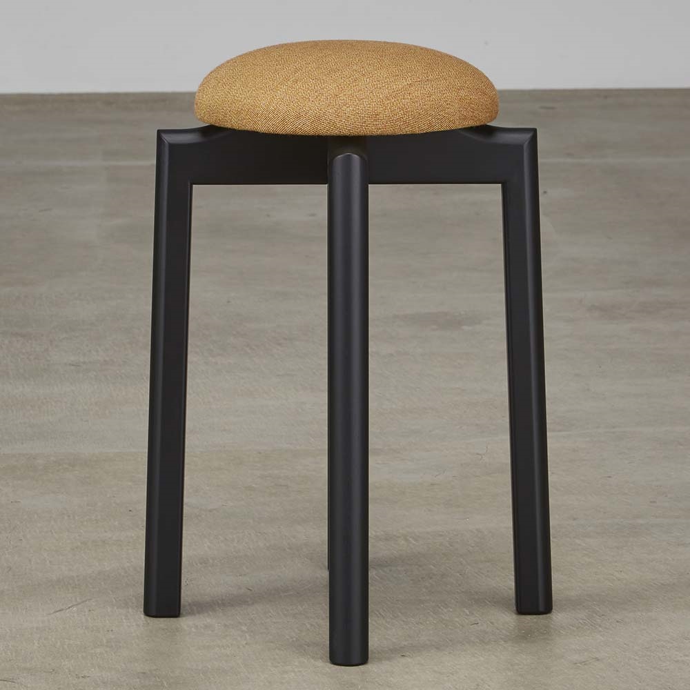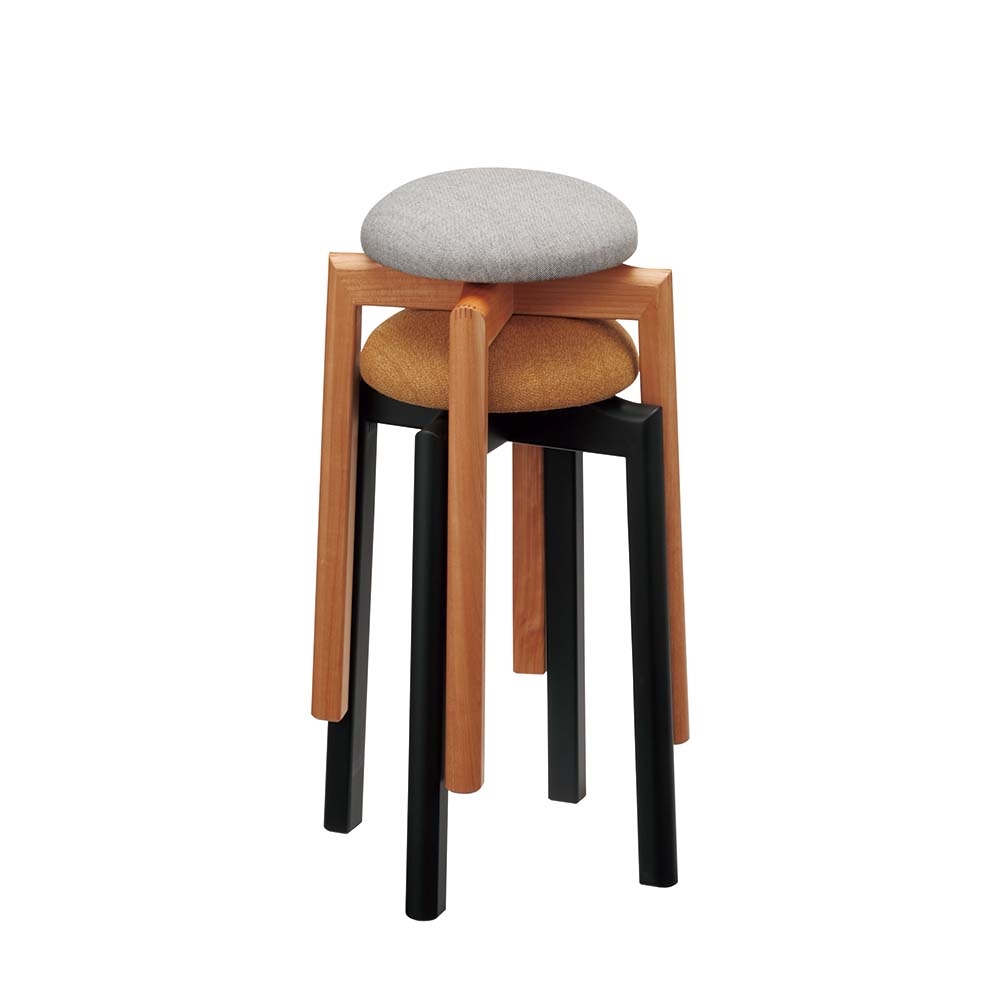 カラフルな座面はまるで森の中にちょこんと育つキノコのような可愛らしいスツール。すっとしたスリムな美脚とぽってりとした座面。座面生地には北欧デンマークを代表する生地メーカー「Kvadrat(クヴァドラ)」を使用。シンプルなシルエットは職人業だからこそ実現できる技術です。シンプルなシルエットは職人業だからこそ実現できる技術です。使用したいシーンに合わせて高さを2パターンからお選びいただけます。ちょっとだけ腰掛けたい、にぴったりなキノコみたいなスツール名前のキノコのようなシルエットが特徴的なスツールは、可愛らしいビジュアルとは裏腹に、職人のこだわりと使う人のための気遣いが詰まったこだわりのアイテム。場所を取らず、使用シーンも問わないので新築祝いやお引越し祝いなどにもおすすめ。すっきりとした脚は日本の職人が作るこだわりの構造で出来ています脚部はフィンガージョイントという、掘り込みで作った溝を組み合わせる技術で実現。細かい作業ですが、しっかりとした強度を持たせることが出来る技で、補強桟を入れずに十分な耐久性を実現しています。スタッキングができる省スペース設計で何脚あっても大丈夫見かけによらずこちらのスツールはスタッキングが可能。使用しない際は省スペースに。スタッキングしてもコロンとした座面はよく見えるので、部屋の隅にそのまま置いてもかわいいビジュアルが魅力的です。使用シーンに合わせて選べる高さは2タイプ高さ60cmタイプ高さが一般的な椅子よりも高い60cmタイプは、立ち座りが多いシーンでおすすめ。キッチンでの調理中やお化粧する際の洗面台などに。サイズがコンパクトなので、水回りに置いても動線の邪魔になりません。高さ43cmタイプ一般的なチェアと同じ高さ43cmは、ダイニング周りやちょっとしたワークスペースなどの、ある程度座って作業するような場所での使用に。来客時に使用するサブのイスとしても便利です。北欧デンマークを代表する、生地メーカー「Kvadrat(クヴァドラ)」を使用生地はマグレーテ・オッドガードによってデザインされたウール張り地のテキスタイルです。新しいメランジュの表現と緻密にニュアンスを調和させることに特に力を注いでいます。マグレーテ・オッドガードは、2つの異なる色の糸を結合することで、これを実現しました。それぞれが2つの色を組み合わせたものです。他のメランジュとは異なり、アトラスの色は繊維に混ぜられていません。代わりに、構造を通じてパターンのように表現されます。その結果、テキスタイルは色の強度と複雑な色の詳細を提供します。選べるカラーバリエーション大人でも使いやすく、かつ可愛らしいシルエットを損なわないカラーバリエーションをご用意しました。イエローは少しだけオレンジがかった温かみのある黄色、グレーは、よく目を凝らすとうっすら黄色い格子模様が付いています。またシックな印象を与え、より大人っぽく仕上がるブラックの脚をお選びいただけます。ブランド:匠工芸/たくみこうげい匠工芸は、1979年に創業し、北海道旭川家具を代表するメーカー。現代の暮らしを楽しく美しくする家具という道具に、日本伝統の木工技術を生かすため、手仕事を大切にしながら創意工夫を続けています。