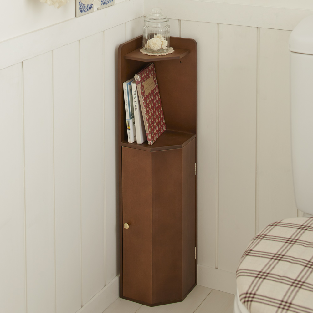 (ウ)ダークブラウン わずかなスペースで収納と飾り棚を手軽にプラス。カントリー調のお手洗いにもぴったり。