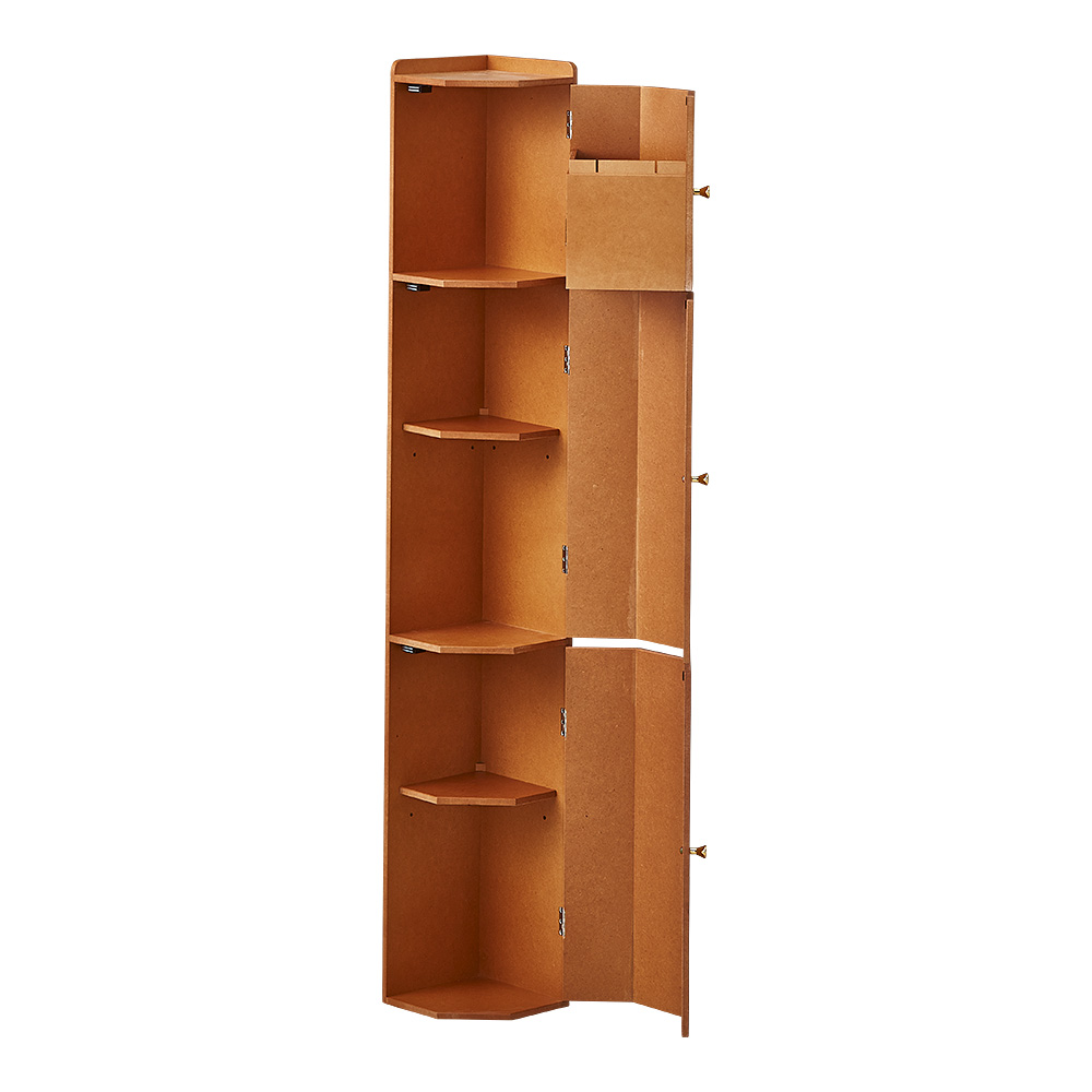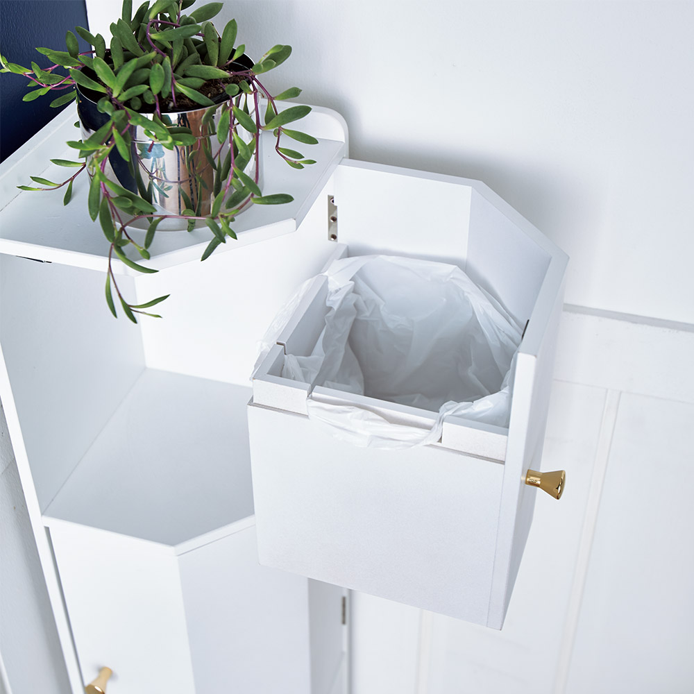 ディスプレイを楽しみながら、ブラシやトイレットペーパーなどの生活用品もしっかり収納するコーナーラック。上には便利なゴミ箱も付いているので、これ1台で充実のトイレタリー収納を実現することができます。こだわりトイレの「隠す」アイデア●コーナーのわずかなスペースに、掃除用品・トイレットペーパー・消臭スプレー、サニタリー用品などのトイレ雑貨を収納。ゴミ捨てもラクラク。●小箱のようなおしゃれなデザインの扉ですっきりと隠すことができます。●棚板は3cm間隔で2段階に調節可能。トイレクリーナーの高さに合わせて設置することができます。●扉内部の棚板を外せば、トイレの掃除ブラシを収納することができます。こだわりトイレの「魅せる」アイデア●オープン部分には、お気に入りの小物や写真を飾ったり、ポプリを置いて華やかさをプラスしたり…お客様に見せたくなるような空間づくりをお手伝いします。●オープン部の棚板も3cm間隔で2段階に調節可能。●本や背の高い芳香剤の高さに合わせて設置できます。●(イ)ナチュラル(ウ)ダークブラウンは天然木の化粧板を使用。●上品な風合いで、隅に置くだけでトイレをランクアップ。