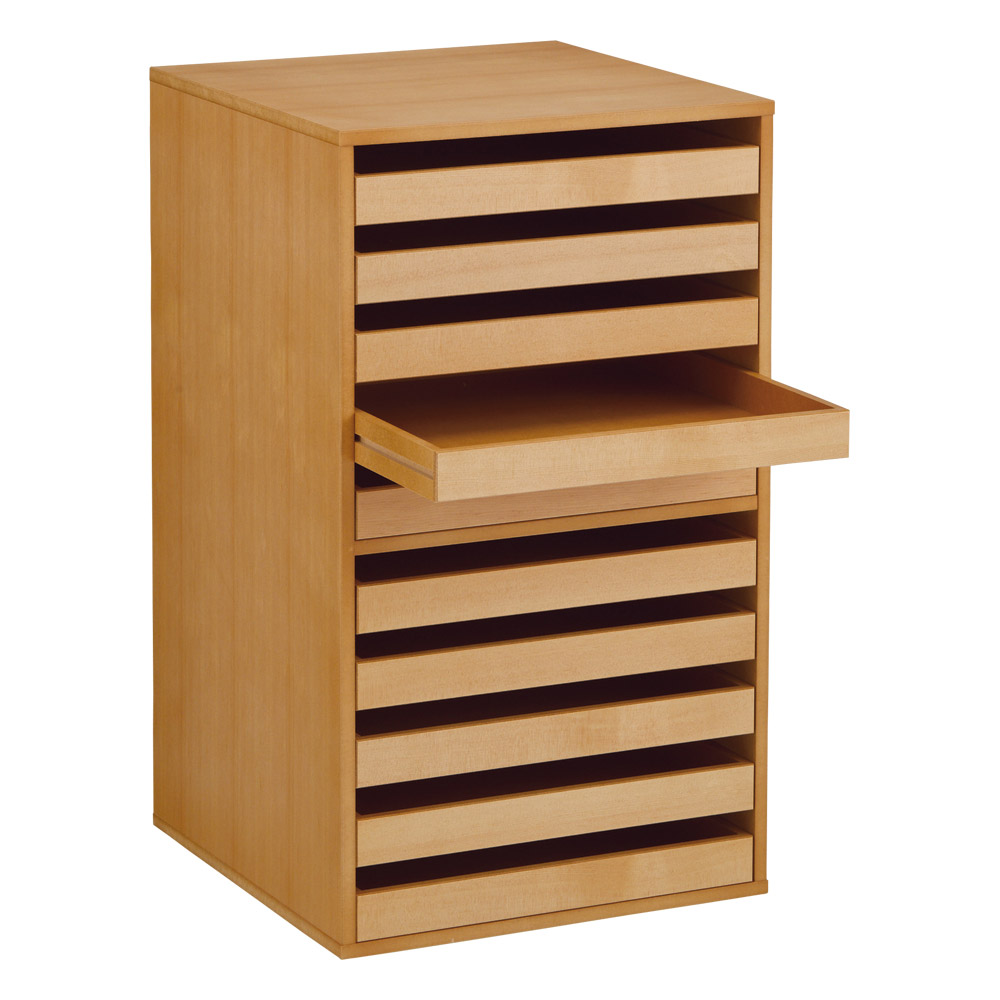 同シリーズのオープンラック、10段トレーチェスト、4段ラックとの組み合わせコーディネート例。組み合わせればFAX台としても使えます。