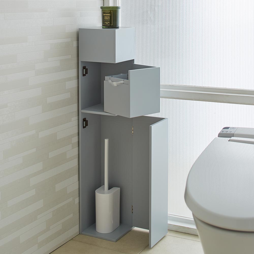 狭いトイレでも置ける。すぐ手が届くコーナーに必要な分だけ目隠し収納できます。 (ウ)ライトグレー