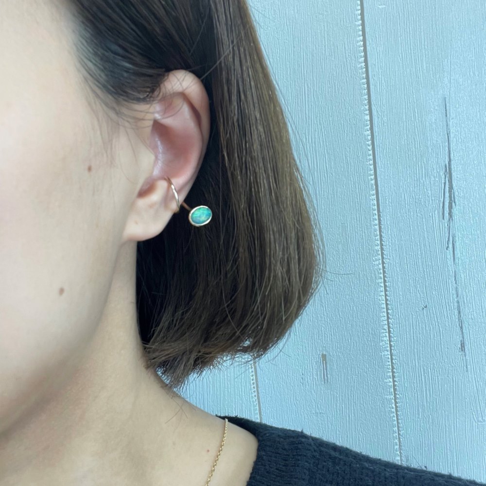 耳元を「盛る」と一気に今っぽく耳たぶのサイドから神秘的なオパールが覗く。