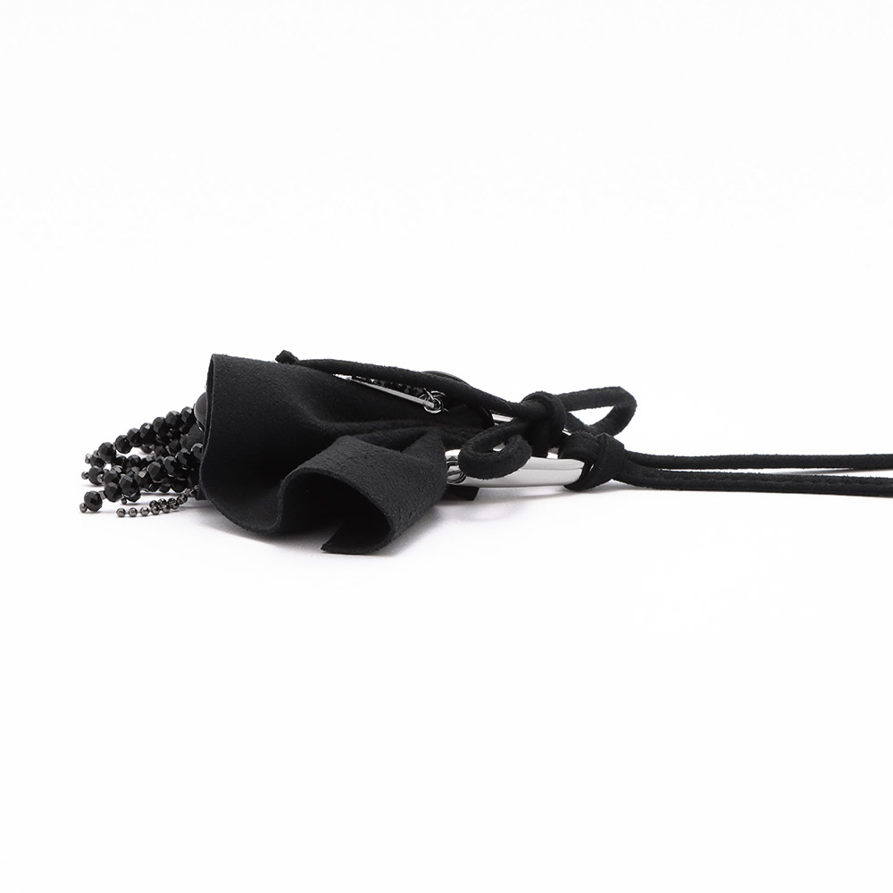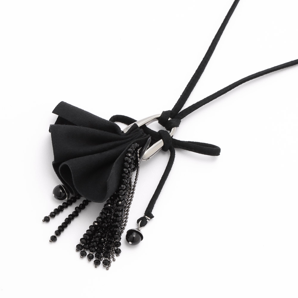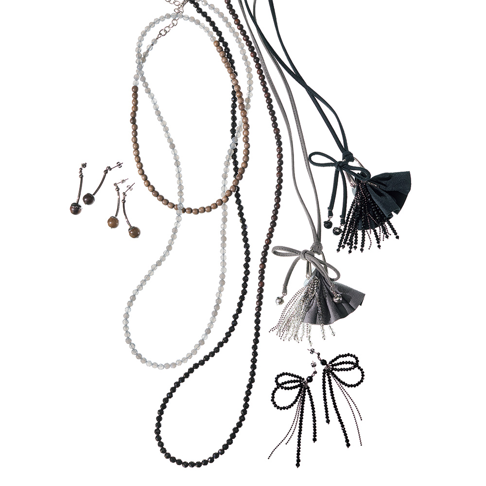 「アトリエ メタリナ」が発信する優しいモードジュエリー。快適な着け心地と温かみのある華やぎは、ハンドメイドならでは。リボンと煌めくパーツを組み合わせたペンダント。手軽に長さ調節できるのも優秀。シンプルな装いに華やぎをプラス。