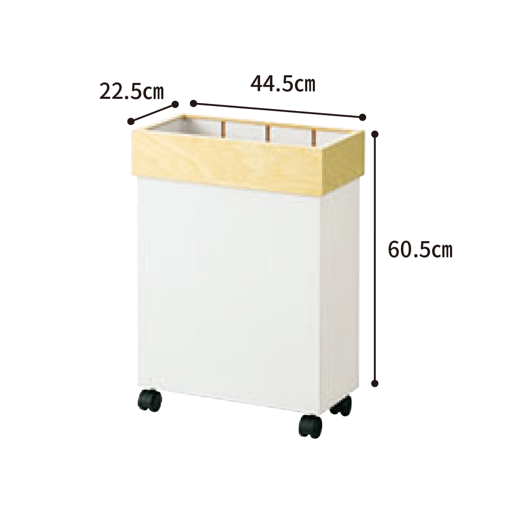 本商品は「≪60L≫ Hanger/ハンガー ダストボックス」です。すっきりした見た目と使い勝手のよさで人気のゴミ箱に新色3色が登場。圧迫感の少ないスリムな形状で、デッドスペースや狭い場所にもスマートに置けます。キャスター付き(30L以上のみ)はディノス特別仕様!スクエア型のすっきりした見た目と使い勝手のよさで人気のゴミ箱に新色登場!スタイリッシュなフォルムながらナチュラルな素材感なので、さまざまなテイストのお部屋にマッチします。グレイブラウン、アイボリー、ストーングレーの3色が新登場。サイズは10L・30L・45L・60Lの4サイズです。【30L・45L・60L】移動に便利なキャスター付きは、ディノス特別仕様です。30L以上のサイズはキャスターが付いていて、小さな力でも移動がラクラク(10Lサイズにはキャスターは付いていません)。お掃除のときもサッと動かせて便利です。【10L】テーブルの下やソファの脇に置きやすいサイズ。キャスターは付いていません。ちょっとしたゴミを捨てるのにちょうどいいサイズです。小さめなのでベッドサイドに置いても。広口でゴミが捨てやすい!30L以上はピザの空箱もそのままポイ。フタがないのでゴミが捨てやすい!30L以上のサイズなら、テイクアウトピザの箱を折りたたまずにそのまま捨てられます。ゴミ袋が外側から見えないので生活感を隠してすっきりしたお部屋に。上から木製カバーをかぶせれば、内側にセットしたゴミ袋をきれいに隠してくれます。分別できるからゴミ出しがスムーズに。スリットが入っていて、30Lは3分別、45L・60Lは4分別に対応可能です。 ※10Lにはスリットがありません。ゴミの分別は生活スタイルに合わせてアレンジできます。よく使うゴミのゾーンは広めにするなど、ゴミ袋のサイズやゴミの種類に合わせてフレキシブルに活躍します。お手入れは固く絞った布で水(お湯)拭きすればOK。天然木とMDFを使用しており、上からウレタン塗装を施しています。普段のお手入れは、固く絞った布で水(お湯)拭きするだけで十分。汚れがひどい場合は、薄めた中性洗剤、水拭き、乾拭きの順番でお手入れしてください。