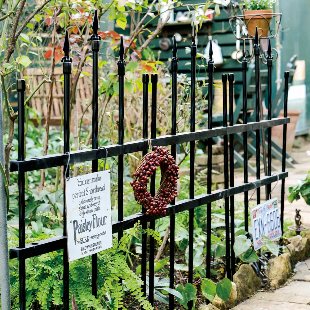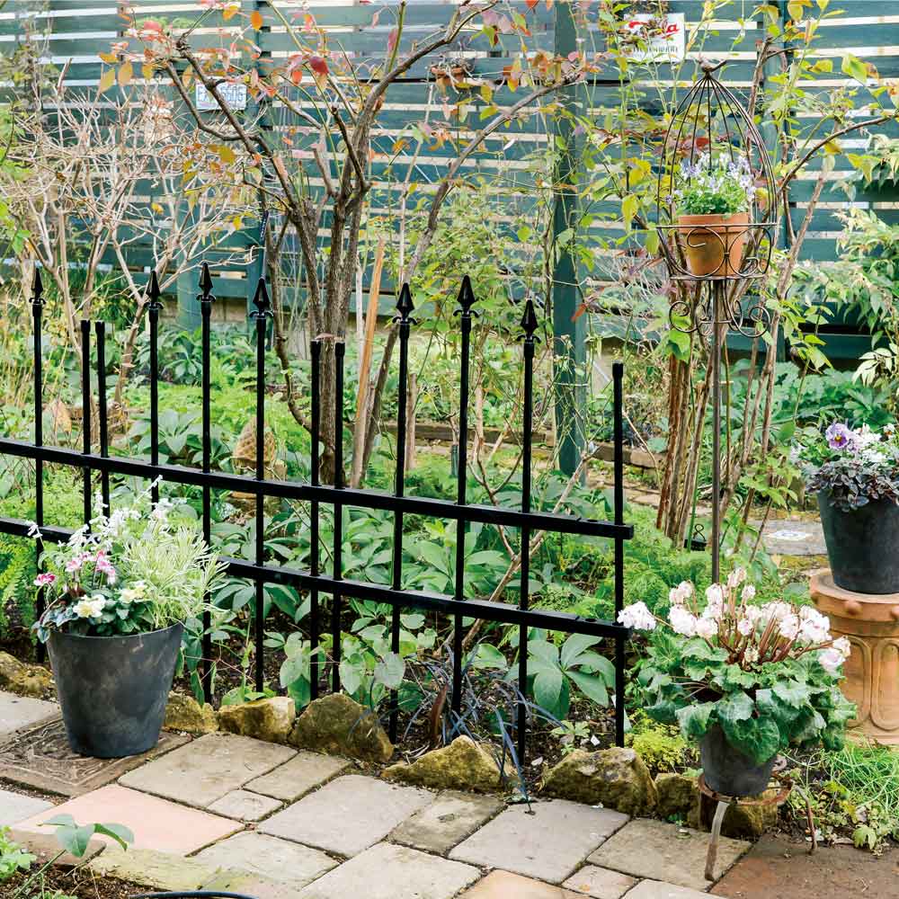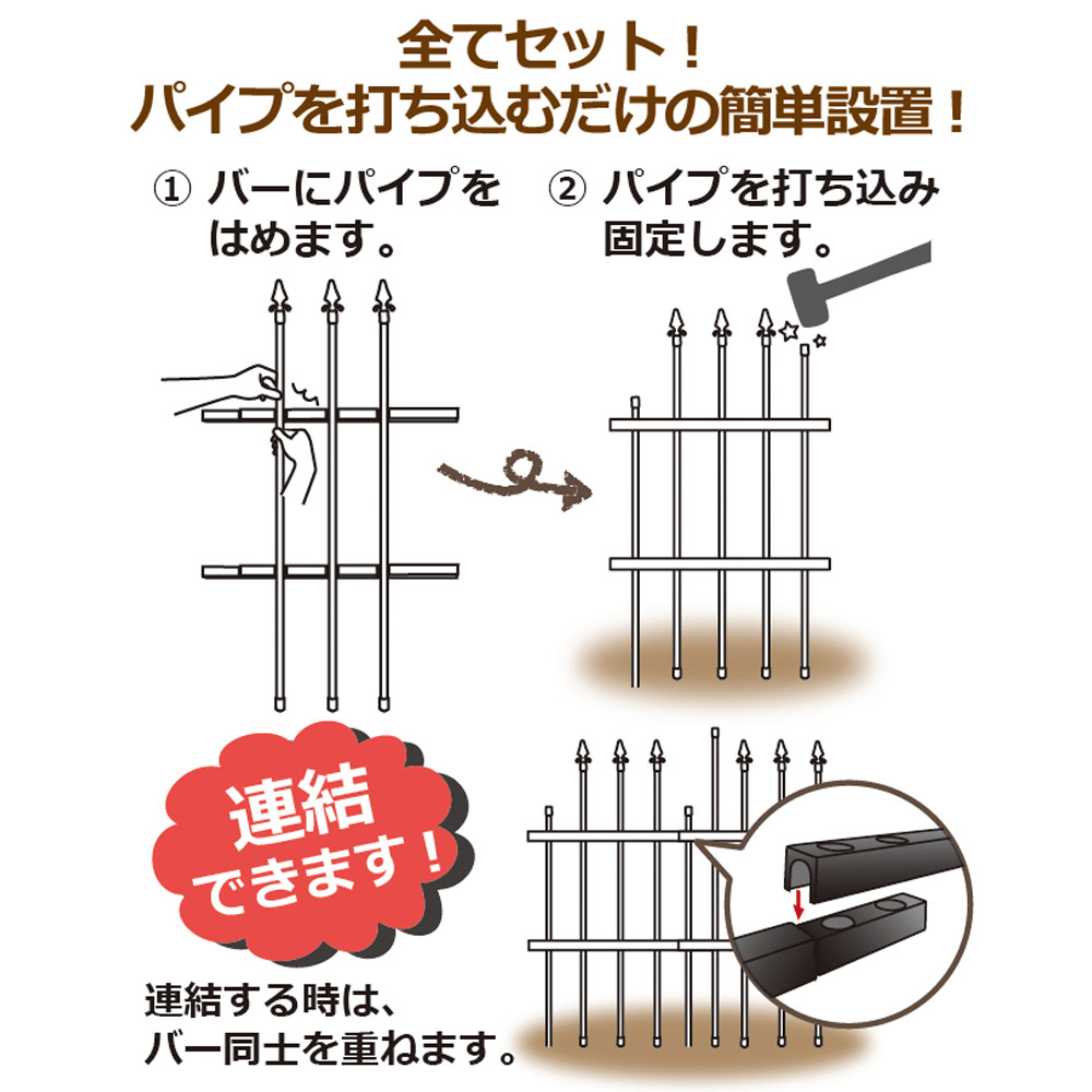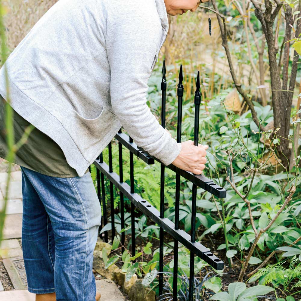 見栄えのいいボリュームたっぷりのフェンス。連結できて設置簡単、トレリスとしても使えます。取り付けにはハンマーが必要です。