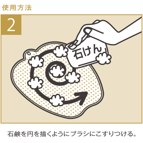 使用方法(2)石鹸を円を描くようにブラシにこすりつけます。