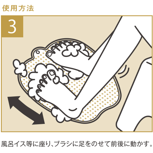 使用方法(3)風呂イス等に座り、ブラシに足をのせて前後に動かす。