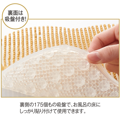 裏面は吸盤付き!お風呂の床に張り付けて使用可能です。※床材によっては貼りつきにくい場合があります。