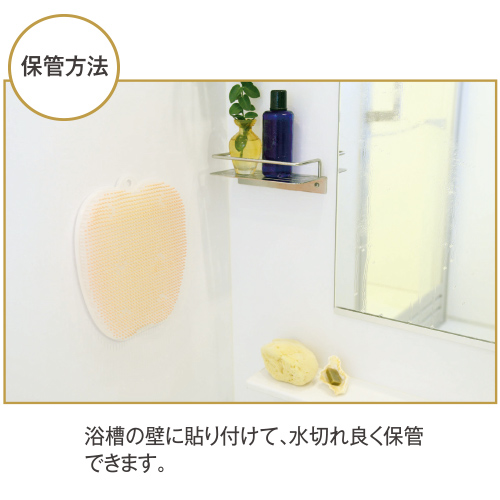 保管方法:浴室の壁に貼り付けて、水切れよく保管できます。