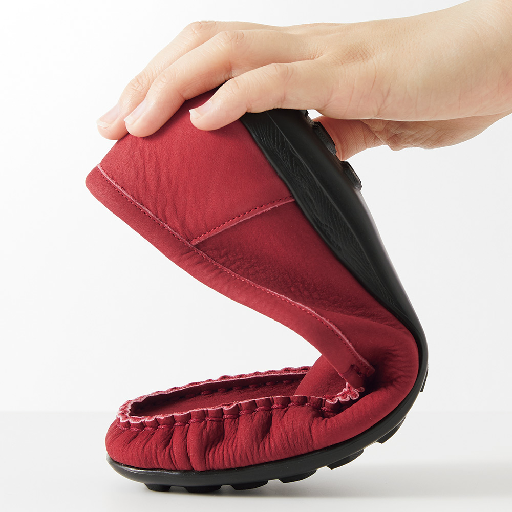 ソールがやわらかく屈曲し、驚くほど足にフィット。締め付け感もなく快適。