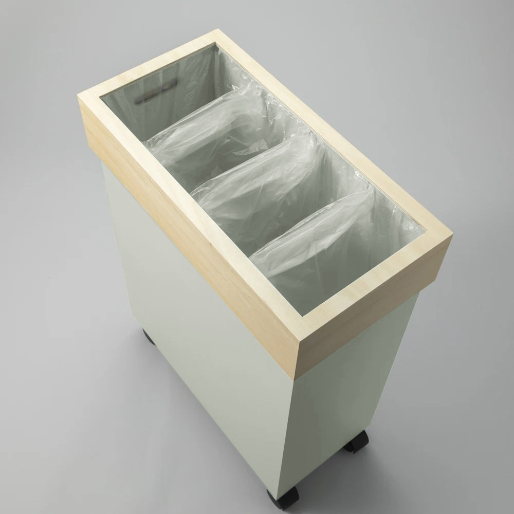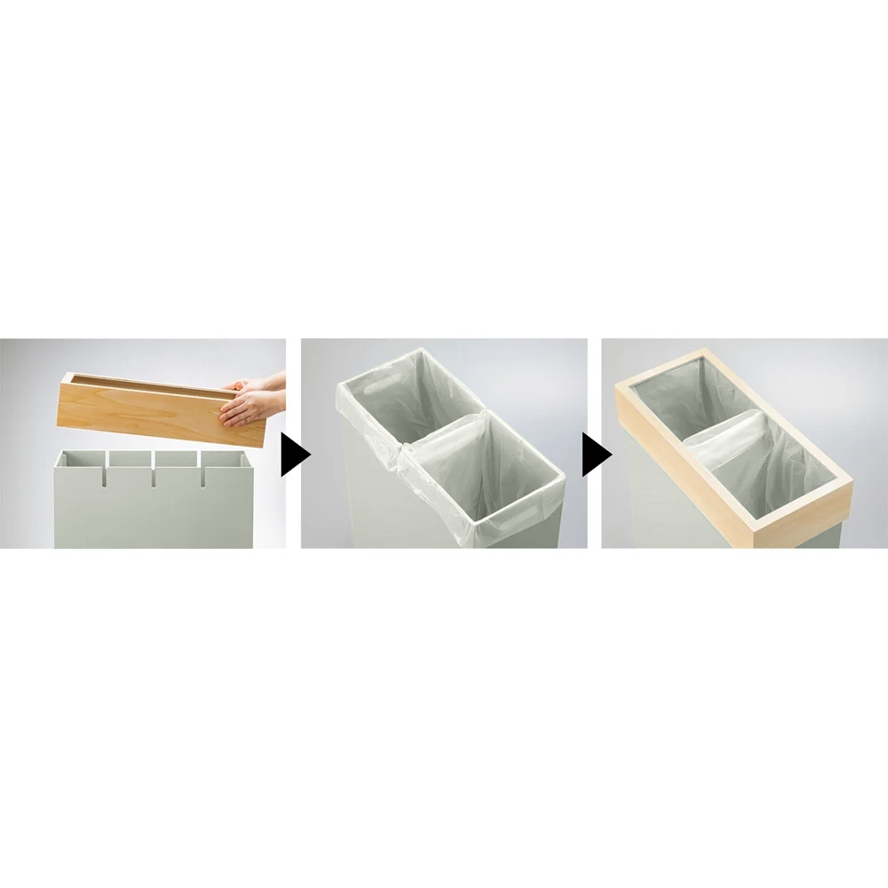 スリットが入っていて、30Lは3分別、45L・60Lは4分別に対応可能です。