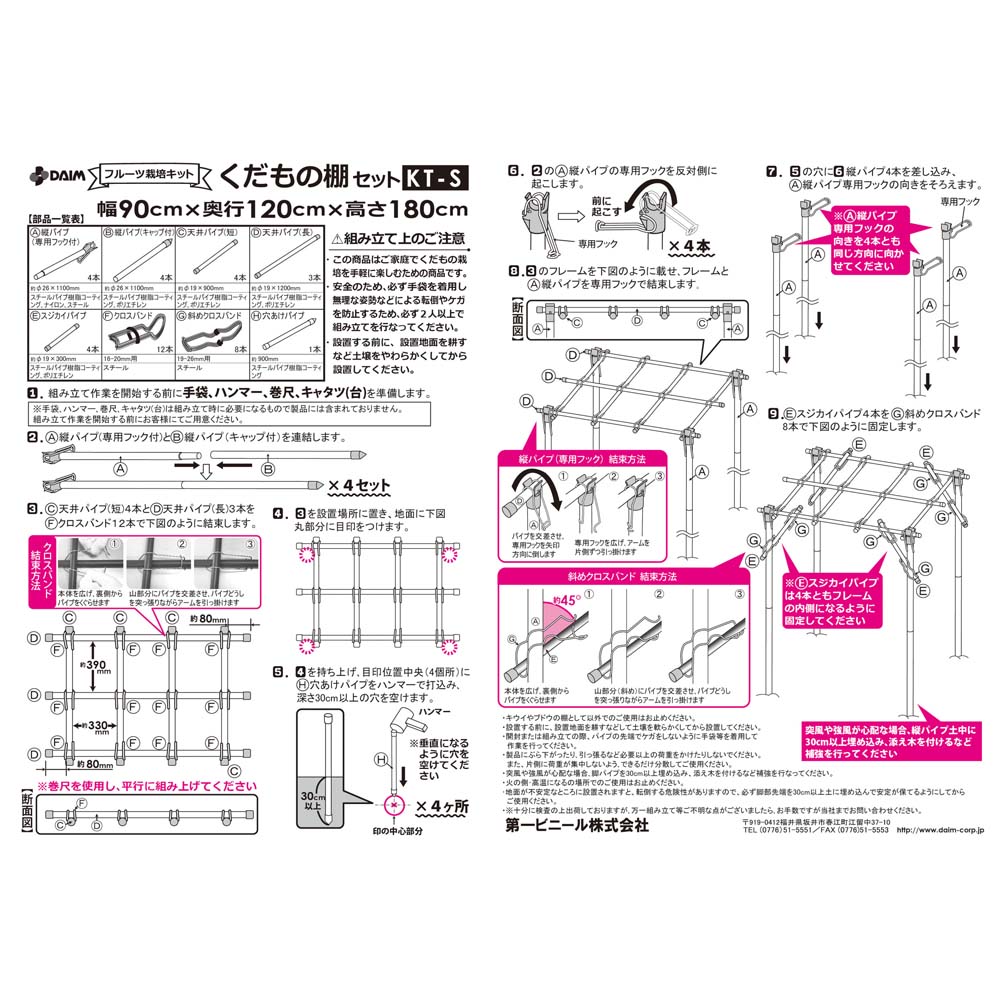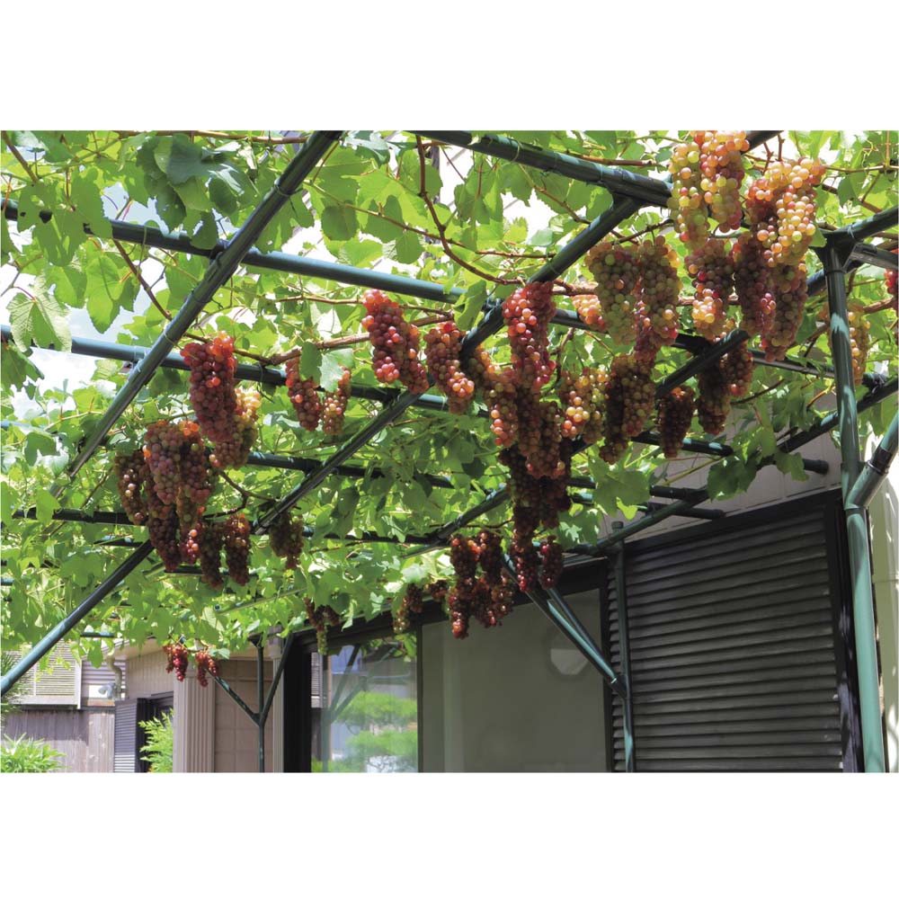 ※スチール製品は素材の特性上、経年変化でサビが発生致します。長くお使い頂くために、お届け直後の錆止め材の塗布をお薦めしております。 また、ご使用開始後も定期的なお手入れをお薦めします。(お手入れ方法&取り付け方法)お庭で手軽に果物の栽培が楽しめる!太陽をいっぱい浴びたフルーツをたわわに実らせて。工具を使わずに設置可能な果物棚セット。自作すると意外と大変なくだもの用の棚も手軽に!・ぶどうやキゥイ、自宅で育ててみませんか?・本商品は工具不要で組立可能。気軽にチャレンジできます。・太めのしっかりしたパイプで、果実の重みにもしっかり耐えます。果物以外にも!お花を絡ませてゴージャスにガーデンを演出。・クレマチスや藤棚としても…お花のトンネルをつくることもできます!・ゴーヤのグリーンカーテンなどにも◎。