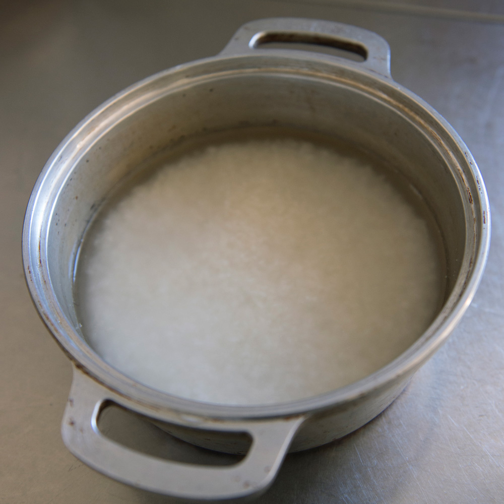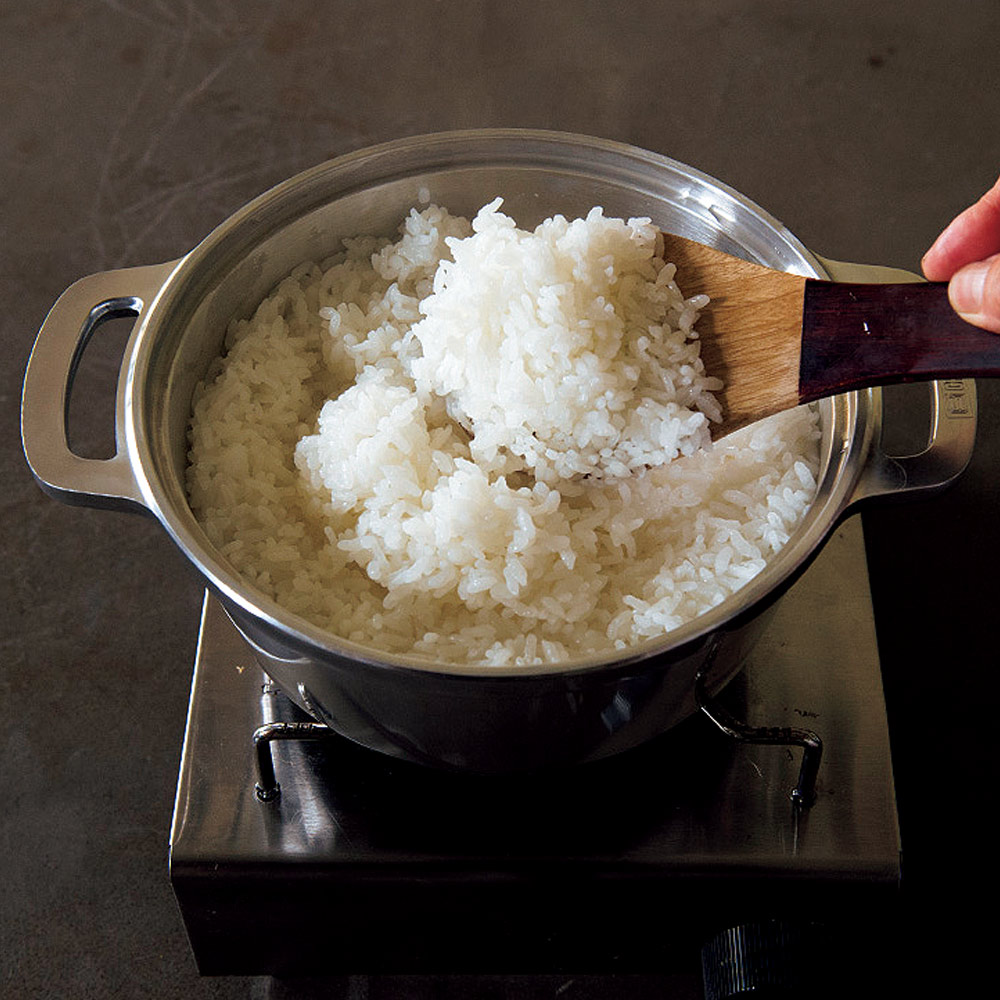 • 「お米は鍋で浸水させ、そのまま火にかけて炊き上げます。」