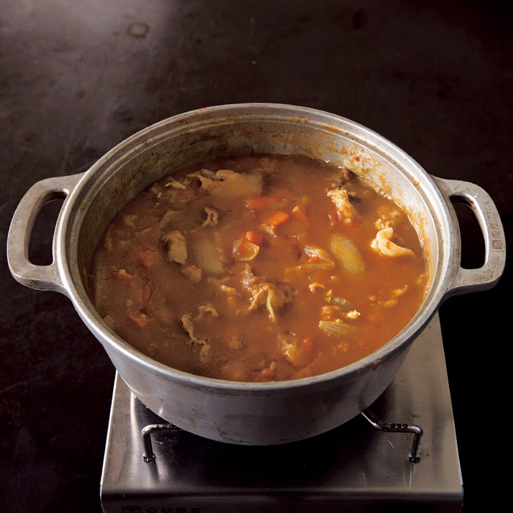 「子供の頃、母の愛用するこの無水鍋がコンロに載っていると今日はカレーだ!とうれしくなったものです。」野菜の水分のみで仕上げることで旨味がぎゅっと凝縮したカレーに。