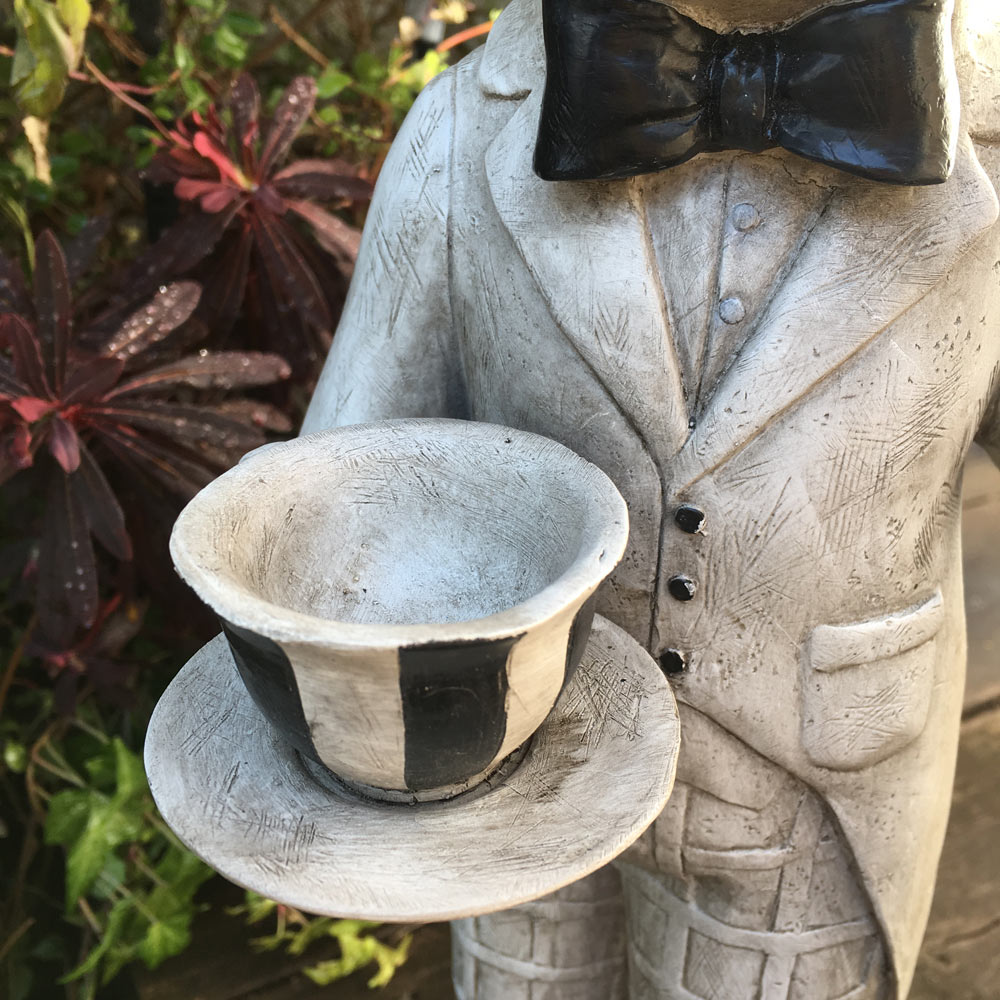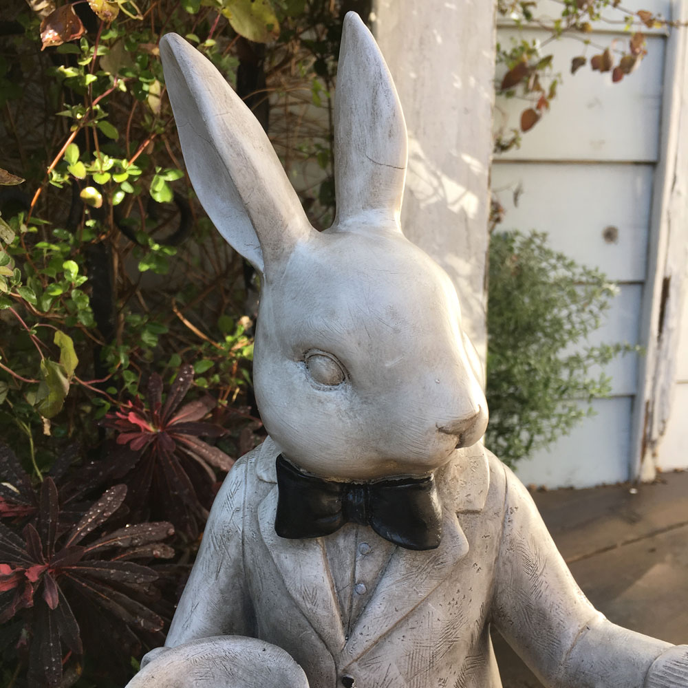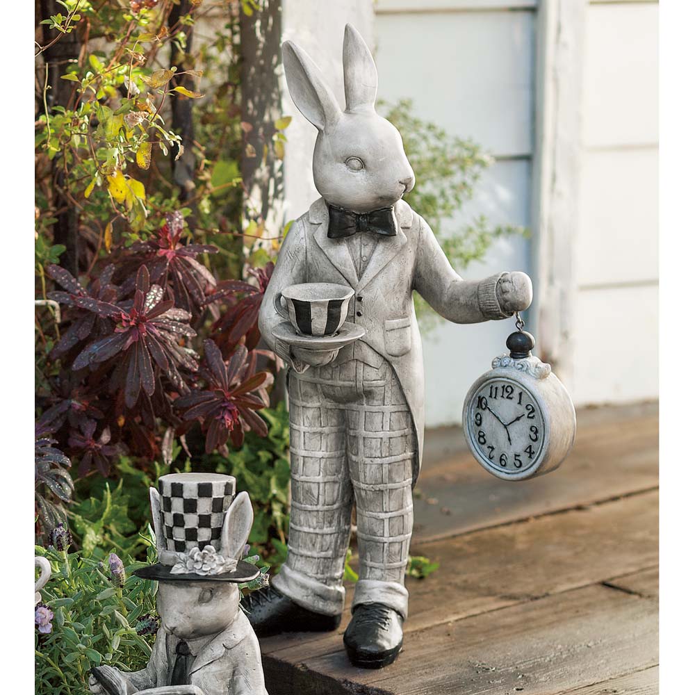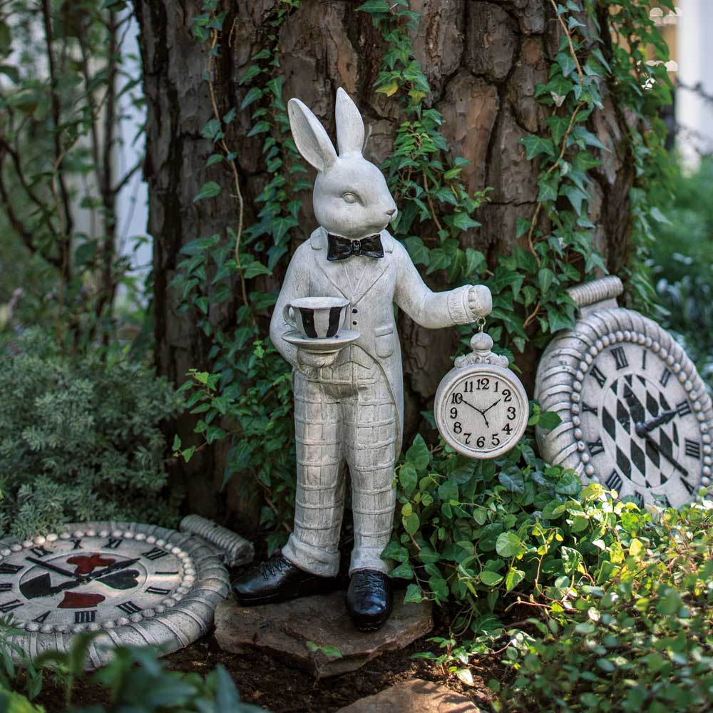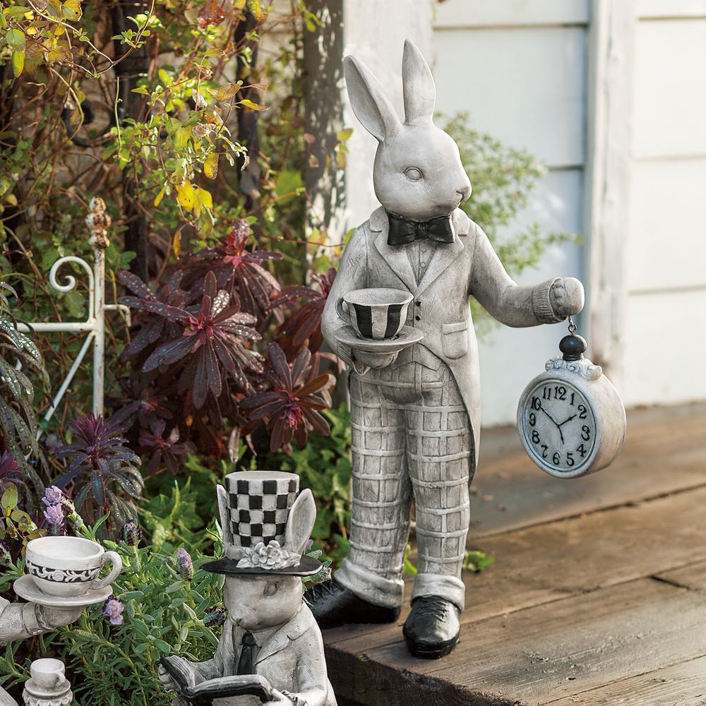 シックなウサギのオーナメントで庭にストーリー性をプラス。キュートなうさぎがティーパーティーへと誘い、お庭にストーリー性をプラスしてくれます。ストーン調のレジン素材なので植栽になじみやすいうえ、シックな印象に。