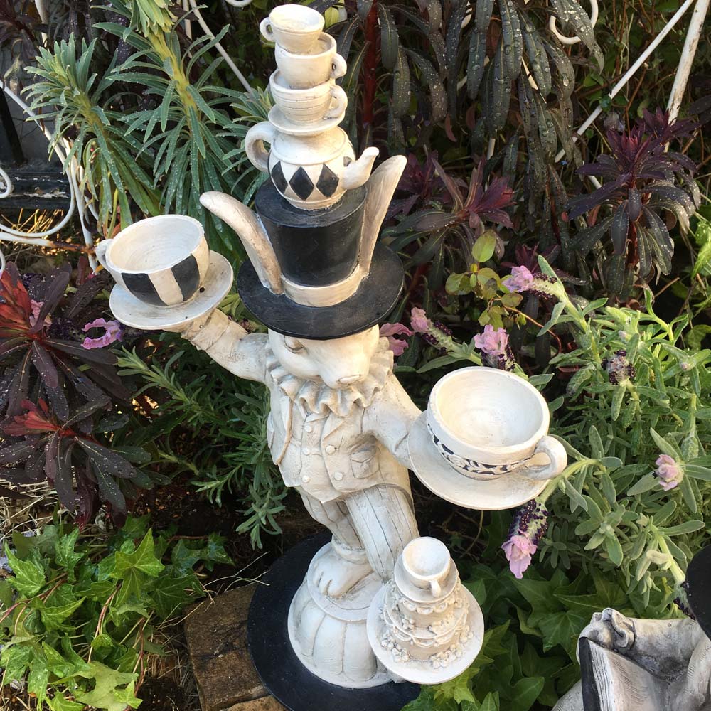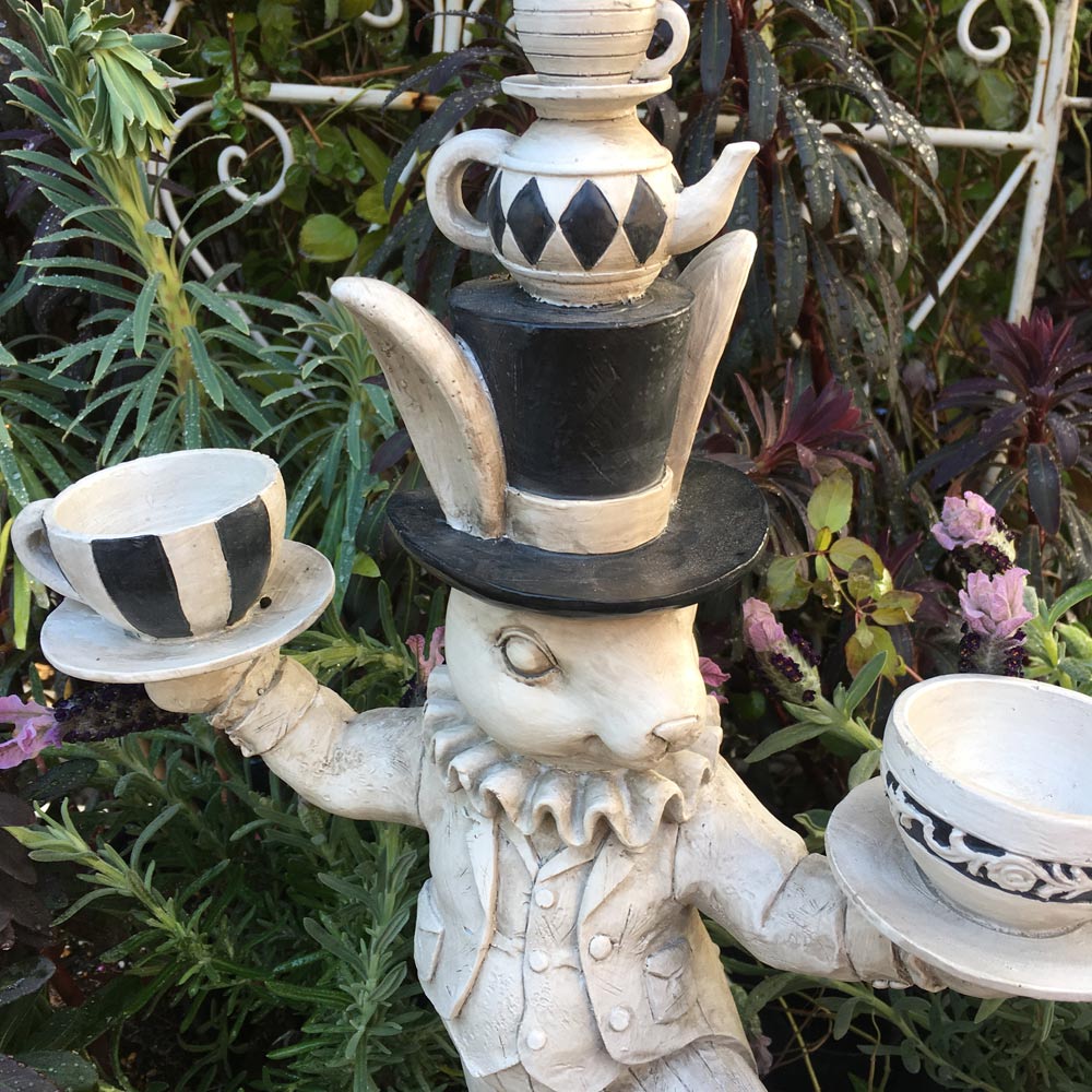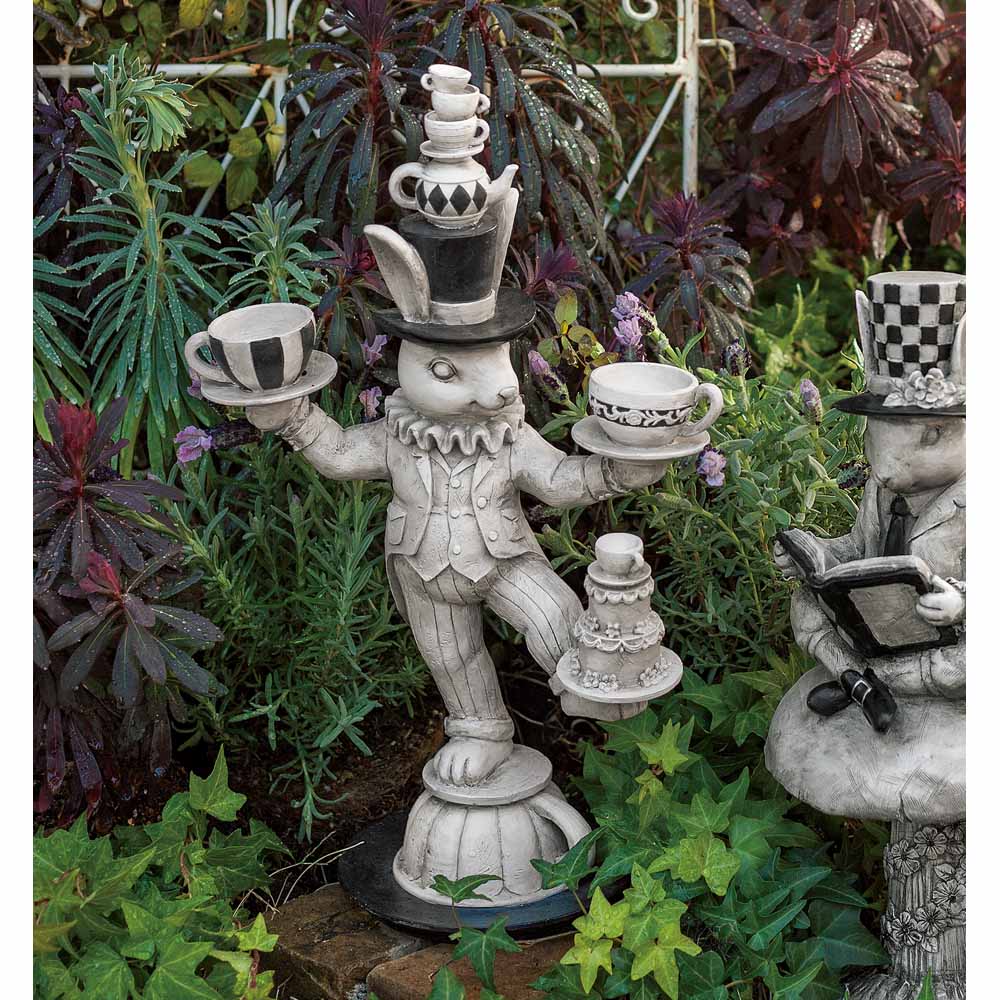 シックなウサギのオーナメントで庭にストーリー性をプラス。キュートなうさぎがティーパーティーへと誘い、お庭にストーリー性をプラスしてくれます。ストーン調のレジン素材なので植栽になじみやすいうえ、シックな印象に。