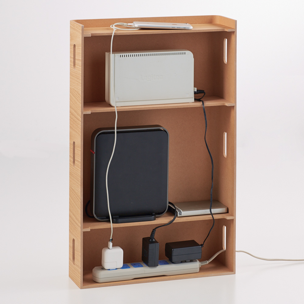 (イ)ナチュラル ルーターやモデムから電源タップまで収納、コード類もすっきり配線できます。
