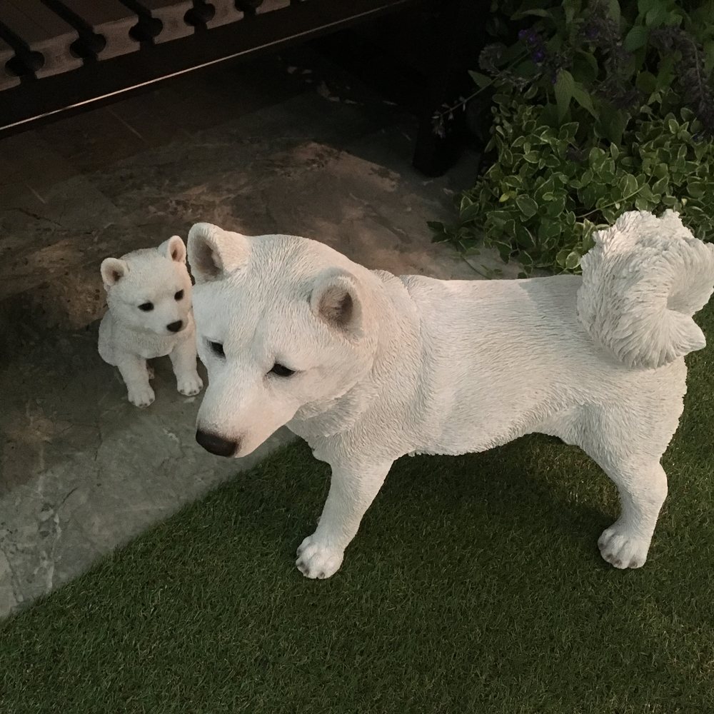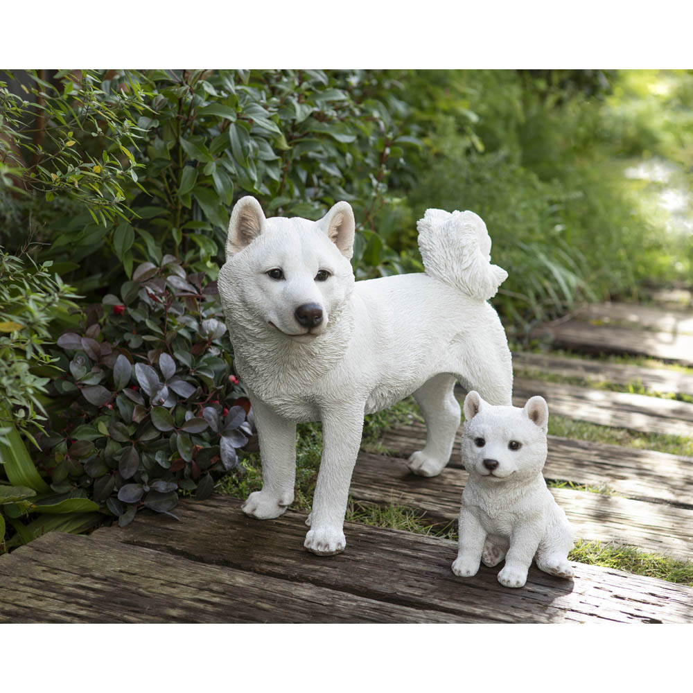 本商品は「白柴犬のオーナメント 子」です。愛着がわく柴犬オーナメント。親子でそろえても。人気の柴犬シリーズに、白柴が新たに仲間入りしました!玄関やお庭、植栽の間にお気に入りのオーナメントを飾って、ガーデンの楽しみを広げましょう。