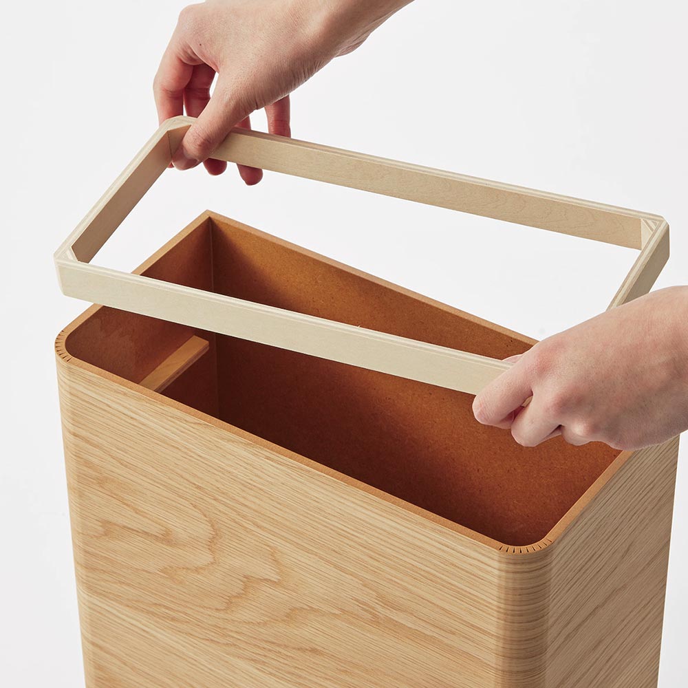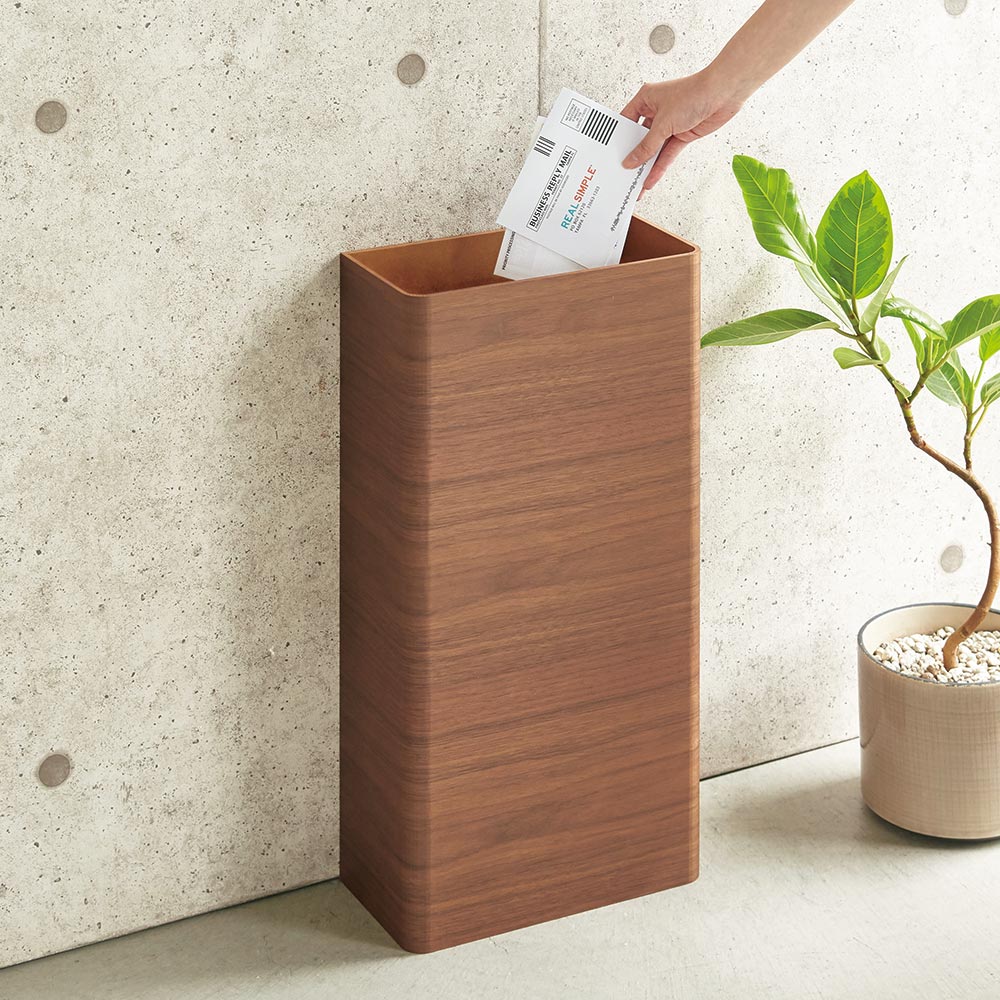 曲木が美しく、スリムで洗練されたルックス。インテリアになじむ、おしゃれなダストボックスです。ポストから引きあげた不要なチラシやDMの破棄にも便利。〜玄関に置ける、スタイリッシュなゴミ箱〜 ◆ごみ箱に見えない美しいデザインとスリムなサイズ感を両立。◆人目につきやすい玄関やエントランスにもおすすめの薄型ごみ箱です。◆不要なチラシ、不在通知、ダイレクトメールなどを部屋まで持ってくることなく玄関で捨てられます。◆お出かけ前に気が付いた小さなごみを捨てるのにも便利です。◆国内の職人がひとつひとつ丁寧に仕上げた日本製です。〜置き場所を選ばない、スリムな形状〜 ◆奥行きはわずか15cm。狭い廊下やシューズボックス横にも省スペースで設置できます。◆薄型なので、洗面所やメイクルーム、書斎・デスク周りのごみ箱としてもおすすめです。◆スタイリッシュなデザインなので、リビング用のサブのごみ箱にもお使いいただけます。〜使い勝手にもこだわりました〜 ◆薄い紙や小さなごみも入れやすいよう、ダストボックスの上部はオープンに。◆背面には隠し収納付きで、ゴミ袋のストック収納にも◎◆ごみ袋止めのインナーリング付きで、外側にビニールがはみ出ない仕様です。〜お部屋のインテリアに合わせて選べる2色〜 (ア)ダークブラウン◆シックで落ち着きのあるダークブラウン。美しい木目で高級感があります。(イ)ナチュラル◆ナチュラルインテリアや北欧風のスタイリングにもおすすめ。お部屋が明るい印象に。■なぜ曲木が人気?他にない曲げ木デザインは北欧のデザイナーズ家具などにも使用されるデザイン。柔らかさや穏やかさを演出できることで人気となっています。「木の質感が穏やかで大満足です。」「色やデザインにこだわることで、部屋のイメージを崩さずすっきりと収まりました。」「写真で見るよりも木目が綺麗で実物の方が質感が良く満足しました。」ディノスでは曲木の商品を多くラインナップ。様々な用途に合わせたシリーズで揃えれば空間全体の統一感と穏やかな美しい部屋を手軽に演出していくことが可能です。